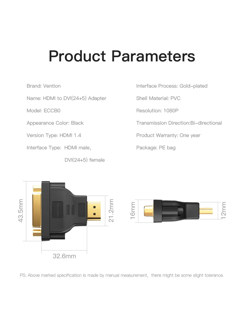 Comprar Adaptador Vention HDMI DVI 1080P HDTV convertidor macho a hembra conector bidireccional HDMI a DVI para PC PS3 proyector TV 24 + 5