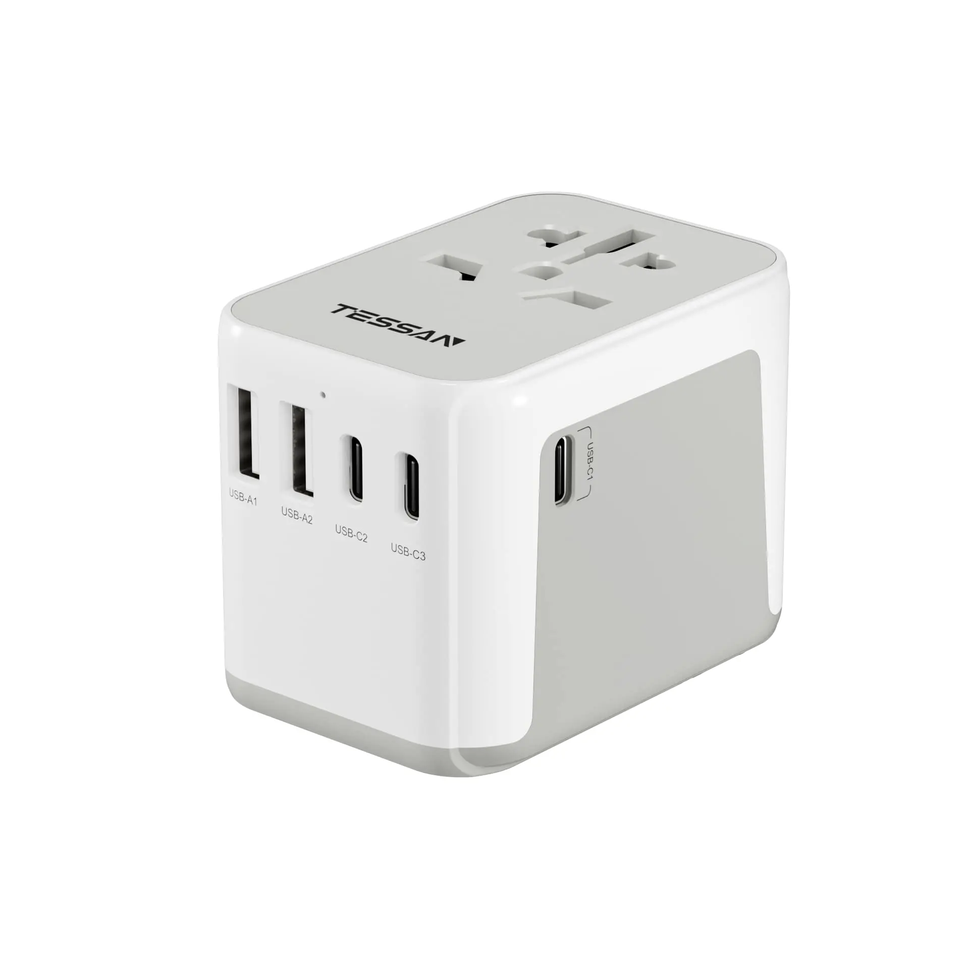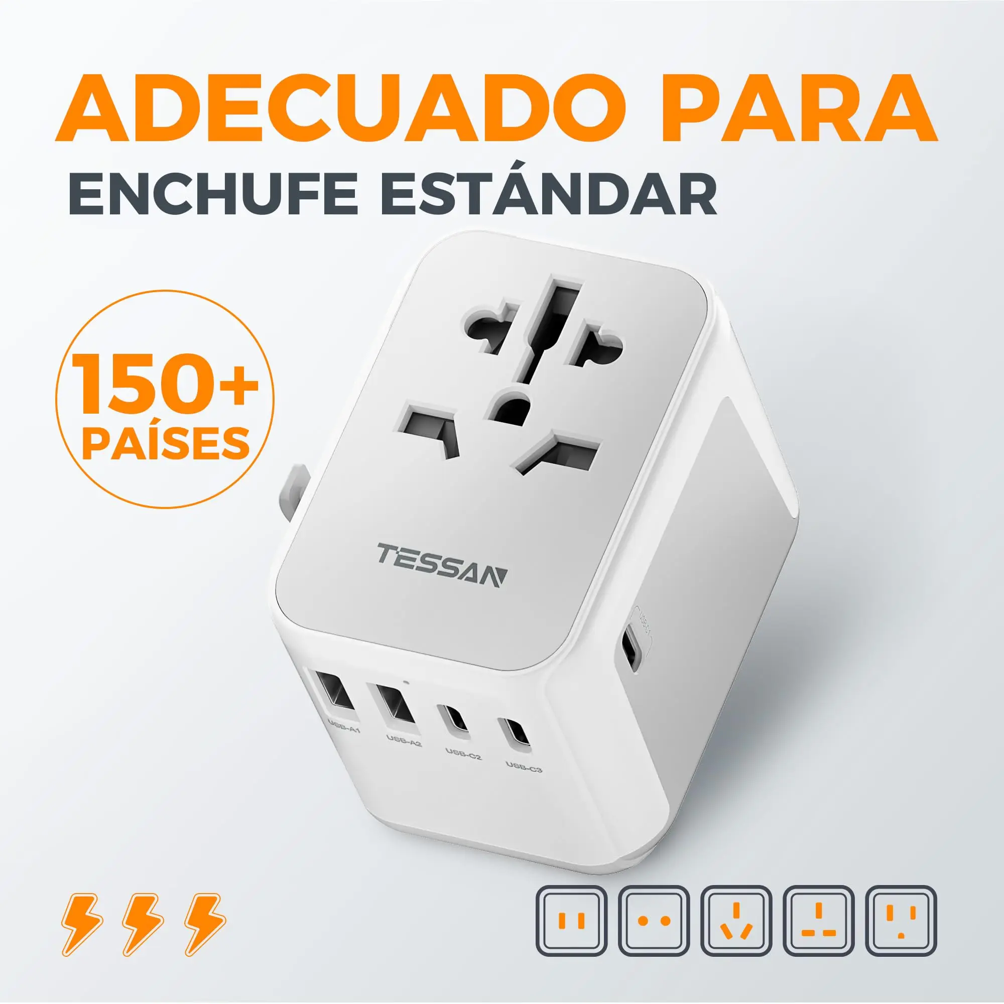 Adaptador de viaje TESSAN en todo el mundo, Adaptador de viaje universal con 2 USB y 3 USB C, Adaptador de enchufe internacional, Adaptador de enchufe de viaje en todo el mundo para Alemania, EE. UU., Inglaterra, Tailandia, Italia, Australia