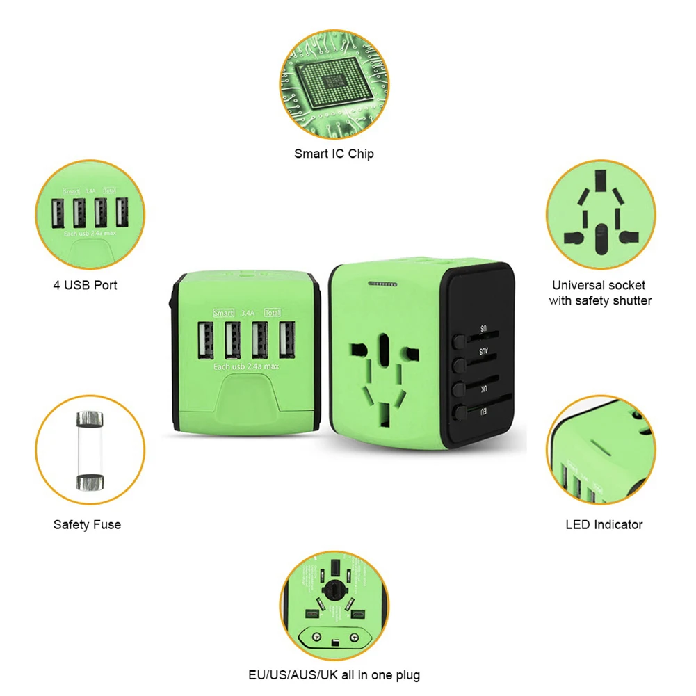 ![]() Adaptador de viaje universal, adaptador de enchufe de alimentación internacional 4USB, cargador de pared portátil todo en uno en todo el mundo, carga rápida de 18W para EE. UU., UE, Reino Unido, AU, teléfono móvil, portátil Característica: 1. Versátil y seguro:Nuestro adaptador de viaje universal está equipado con 4 tipos de enchufes diferentes, lo que lo hace compatible con más de 200 países y regiones. También cuenta con múltiples protecciones de seguridad para evitar sobretensiones, sobrecorriente y sobrecalentamiento. 2. Carga rápida:Con tres puertos (3A) y dos puertos (2, 4A) de 1 y 2 puertos (1 A), nuestro adaptador de enchufe internacional puede cargar varios dispositivos USB simultáneamente a alta velocidad. Es perfecto para cargar iPhones, teléfonos Samsung, tabletas, relojes inteligentes, rastreadores de actividad física, cámaras, consolas de juegos portátiles, auriculares y más. 3. Compacto y ligero:Nuestro adaptador de corriente internacional es pequeño y ligero, lo que facilita su transporte dondequiera que vaya. Es el compañero de viaje perfecto para las personas que siempre están en movimiento. 4. Diseño de calidad:Nuestro cargador adaptador de corriente está construido para durar, con materiales de alta calidad y artesanía superior. Está diseñado para soportar los rigores de los viajes y el uso diario, lo que garantiza que siga siendo una herramienta fiable y eficaz durante años. 5. Garantía de satisfacción del cliente:Respaldamos nuestro adaptador de enchufe de alimentación de CA y nos comprometemos a garantizar que nuestros clientes estén satisfechos con su compra. Si por alguna razón no está completamente satisfecho con su adaptador, trabajaremos con usted para hacer las cosas bien. Especificación: Certificación: NINGUNA Origen: China continental Tipo: Enchufe eléctrico Conexión a tierra: sin conexión a tierra Protección contra sobrecarga: Sí Protector contra sobretensiones: Sí Longitud del cable de extensión: Ninguno Número de modelo: adaptador de viaje universal Aplicación: residencial/de uso general Material: ABS, componentes electrónicos Modelo del producto: 199-4U Voltaje de entrada: CA 100-240V 50/60Hz Voltaje de salida: DC 5V 2.4A/Max Corriente de salida: 3.4A total Características del producto: Interfaz de salida 4USB Tamaño del producto: 65x50x50mm/2,55x1,96x1,96 pulgadas Color: blanco, verde Estándar DE ADAPTACIÓN: Conversión multinacional Número de agujeros: 4 Número de gatos: 2 5 agujeros Tipo de interfaz: Interfaz 4USB Estándar de carga: QC 18W Nota: ![]() ![]() ![]() ![]() ![]() ![]() ![]() ![]() ![]() ![]() ![]() ![]() ![]() ![]() ![]()