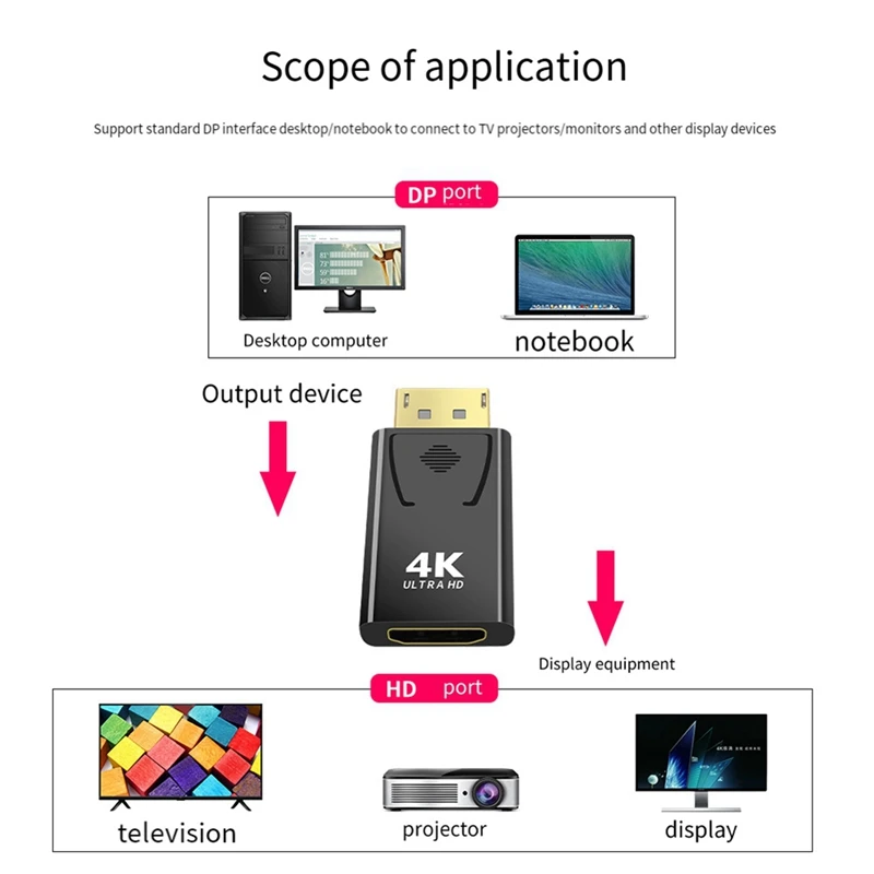 Comprar Adaptador de vídeo 4K Dp a Compatible con Displayport macho a Compatible, convertidor de Monitor de TV de ordenador para PC y TV, fácil de usar