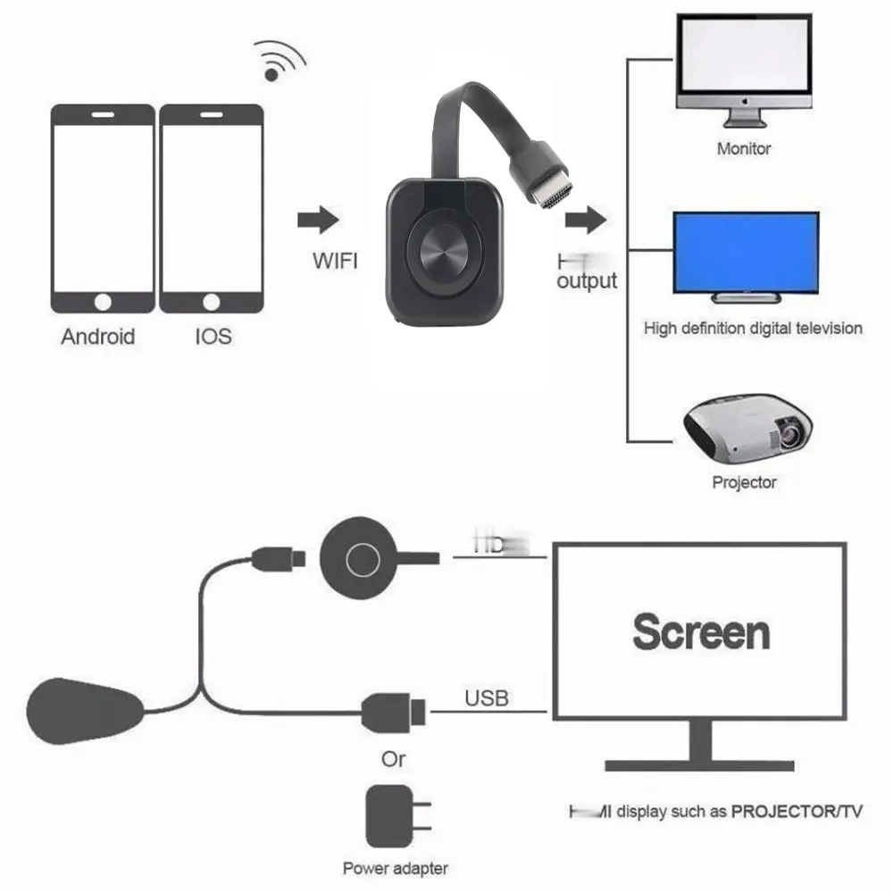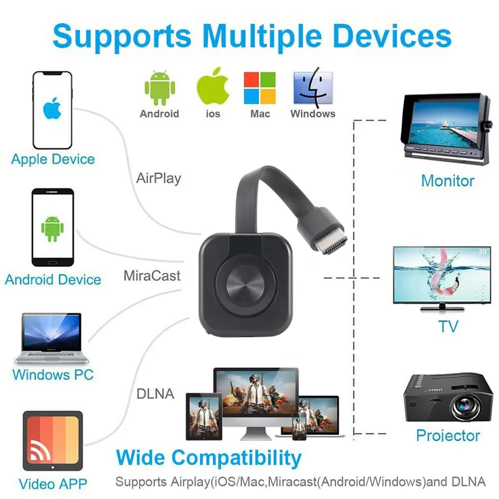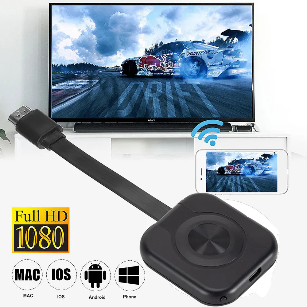 Comprar Adaptador de vídeo Dongle Airplay, dispositivo inalámbrico compatible con HDMI, TV Stick para teléfono MiraScreen 1080P, USB, WiFi