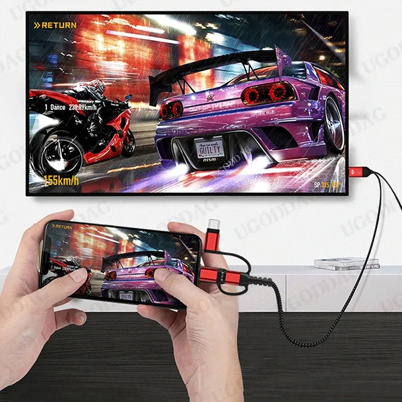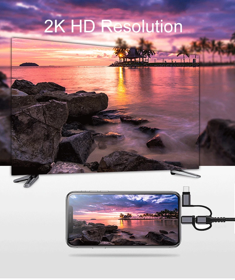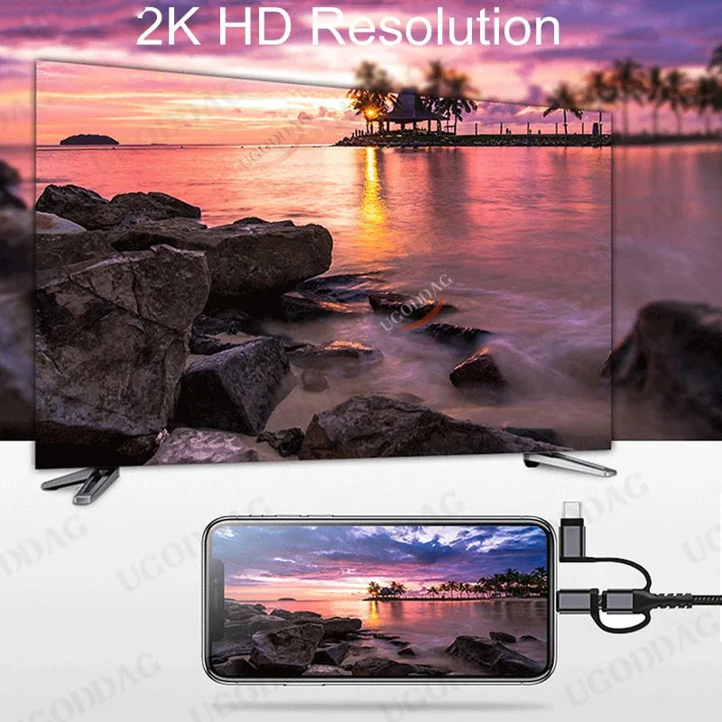 4. 3in1 cable support 4K 60HZ,iOS Cable support 1080P