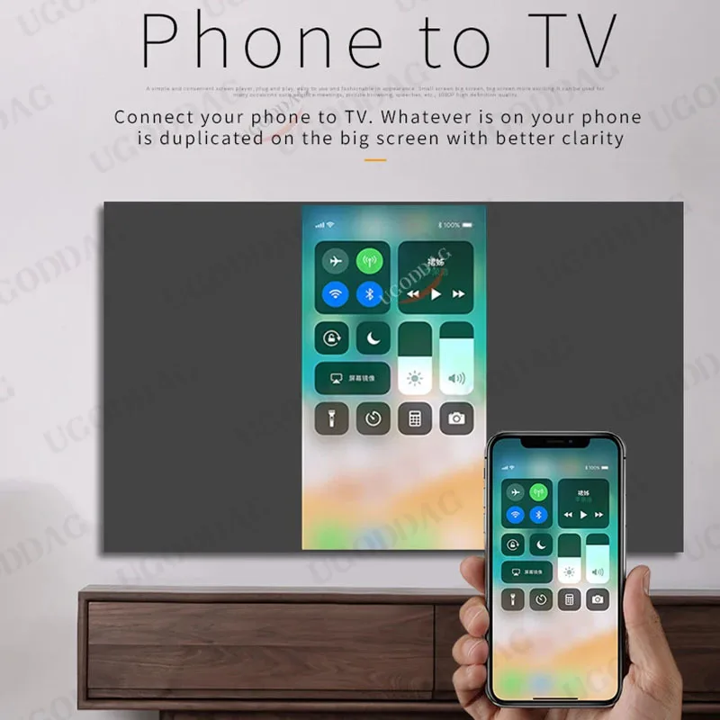Function: Cast mobile phone to HDMI-Compatible TV/Projector or Display monitor,so that you can enjoy with