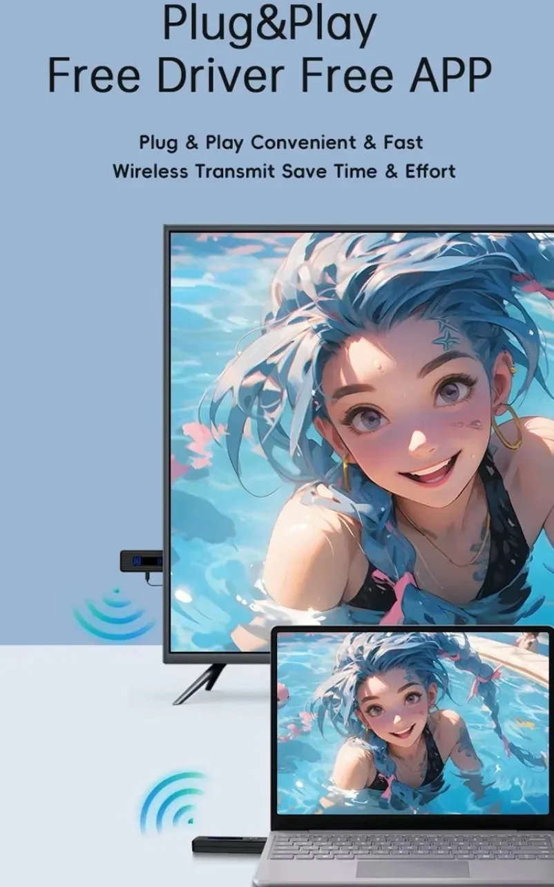 2.Transmisión de audio y vídeo HDMI a través del protocolo de transmisión inalámbrica incorporado, sin necesidad de wifi ni de Internet.