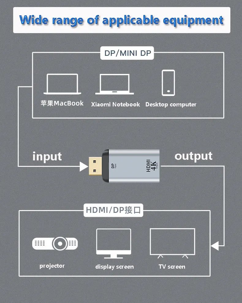 Adaptador de vídeo Mini DP 1.2 a HDMI 2,0 4K @ 60Hz, adaptador DisplayPort para ordenador portátil, Monitor de proyector, 1 ud.