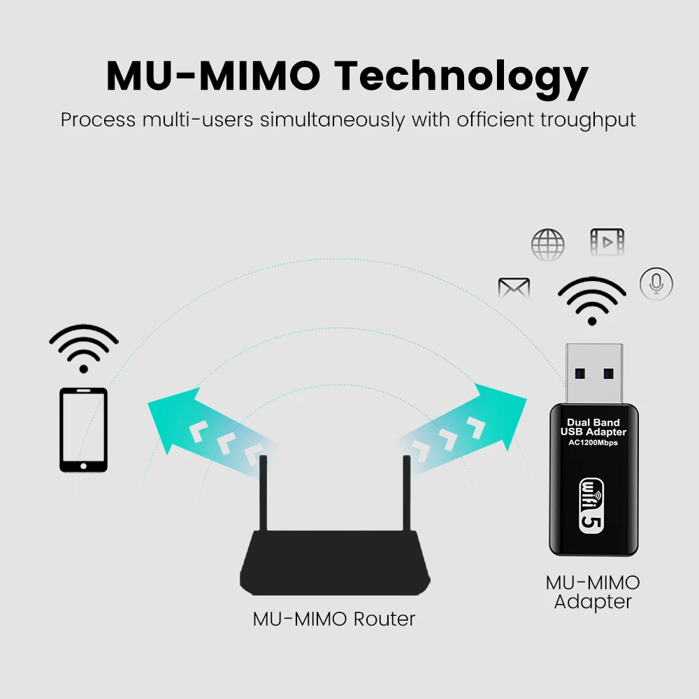 1. Adaptador WiFi de doble banda de 1300Mbps, hasta 867Mbps en 5GHz y 400Mbps en 2,4 GHz.