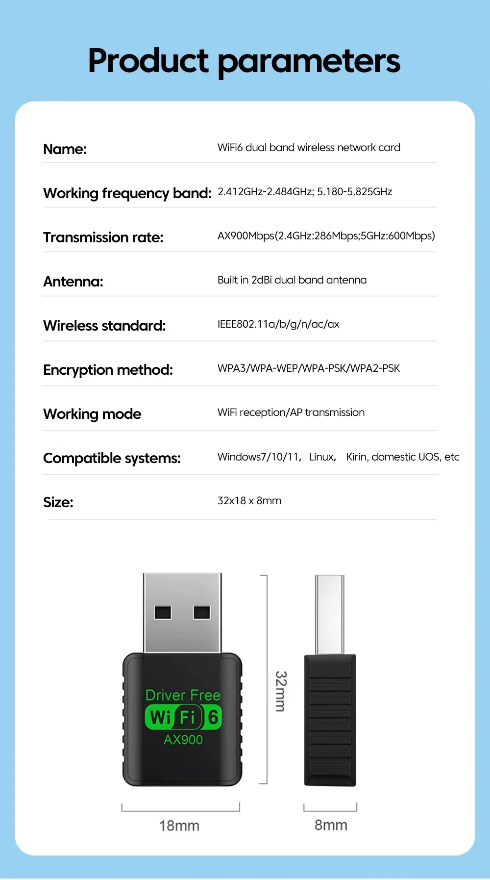 1)900M y BT5.4:900Mbps+Bluetooth 5.4+2.4G/5GH