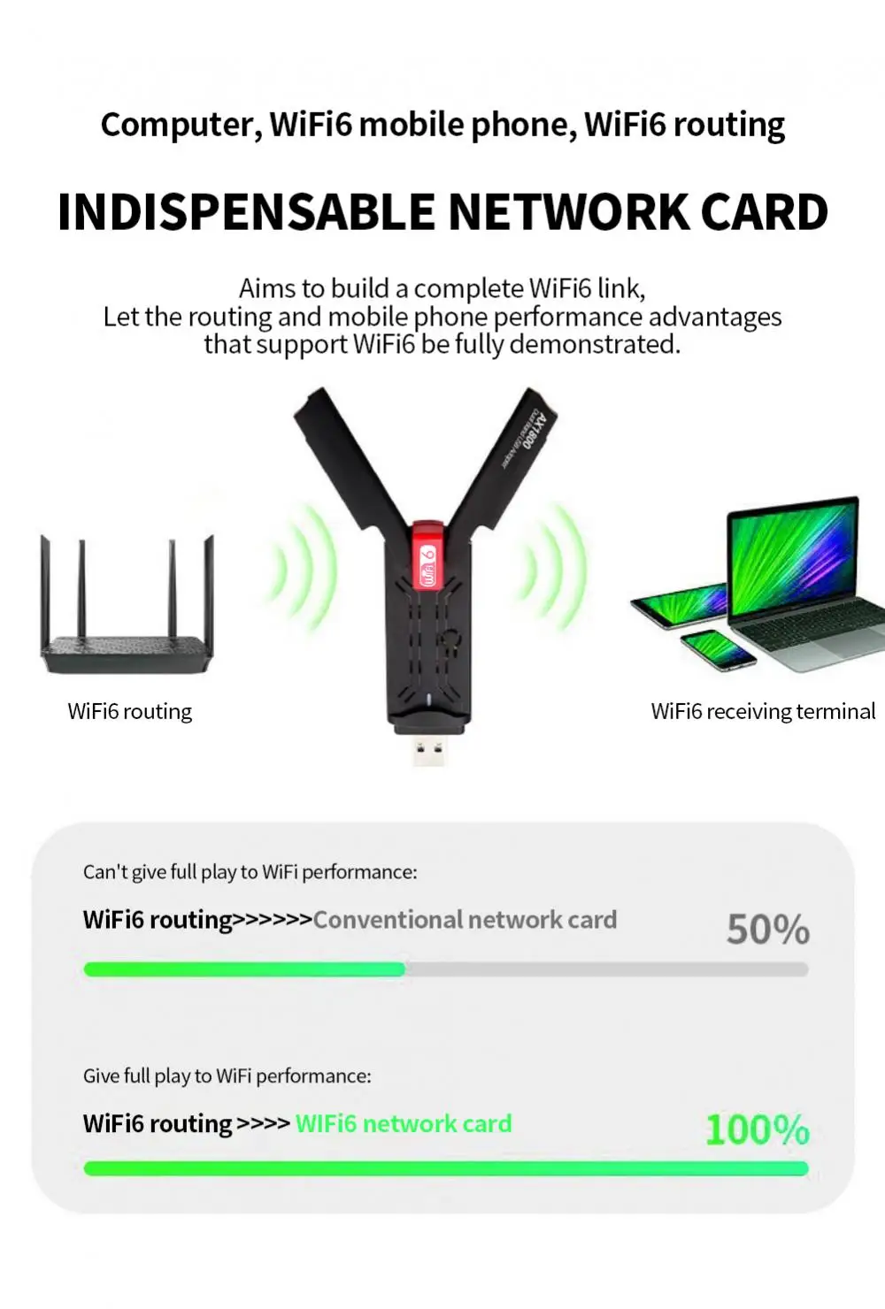 1. Con la tarjeta de red wifi 6 USB, la fuerza se duplica.