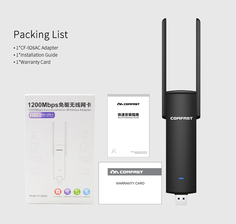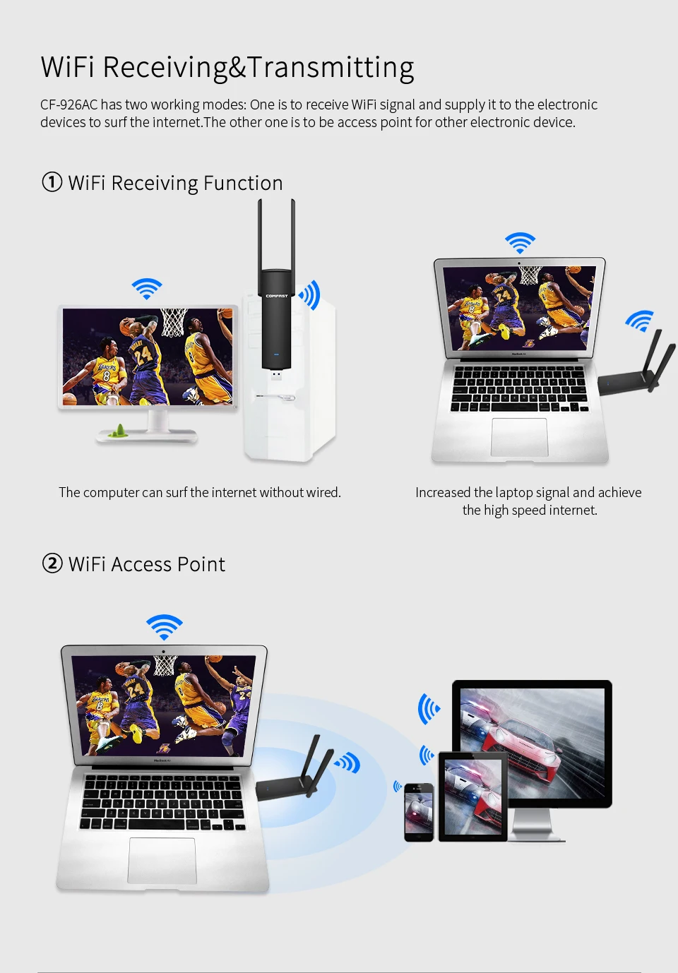 Adaptador WiFi Comfast 2.4G y 5G USB3.0 unidad libre WiFi Dongle AC1200 tarjeta de red inalámbrica para modo de monitor Win XP/7/8/10/11 Kali Linux