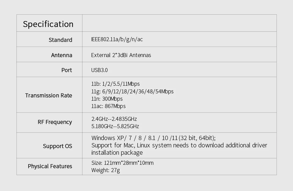 Comprar Adaptador WiFi Comfast 2,4G y 5G USB3.0 unidad libre WiFi Dongle AC1200 tarjeta de red inalámbrica para Win XP/7/8/10/11 Kali Linux Monitor