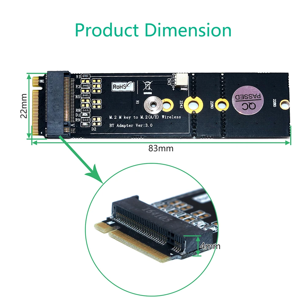 1. Compatible con clave NGFF(M.2) tarjeta tipo A 2230 A llave M 2230/2242/2260/2280, como, tarjeta combinada Intel 7265/8260/8265/9060 Wifi y Bluetooth (tipo 2230/tecla A + E) Convertir A clave M