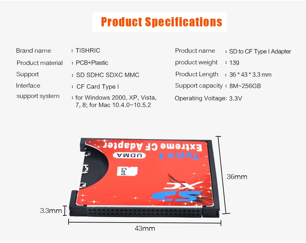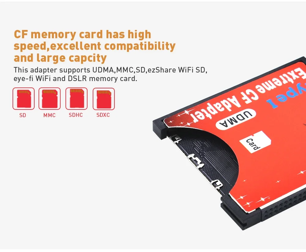 Comprar Adaptador WiFi SD a tarjeta CF SDHC SDXC MMC a Flash compacto estándar tipo I convertidor de tarjetas lector de tarjetas UDMA para cámara