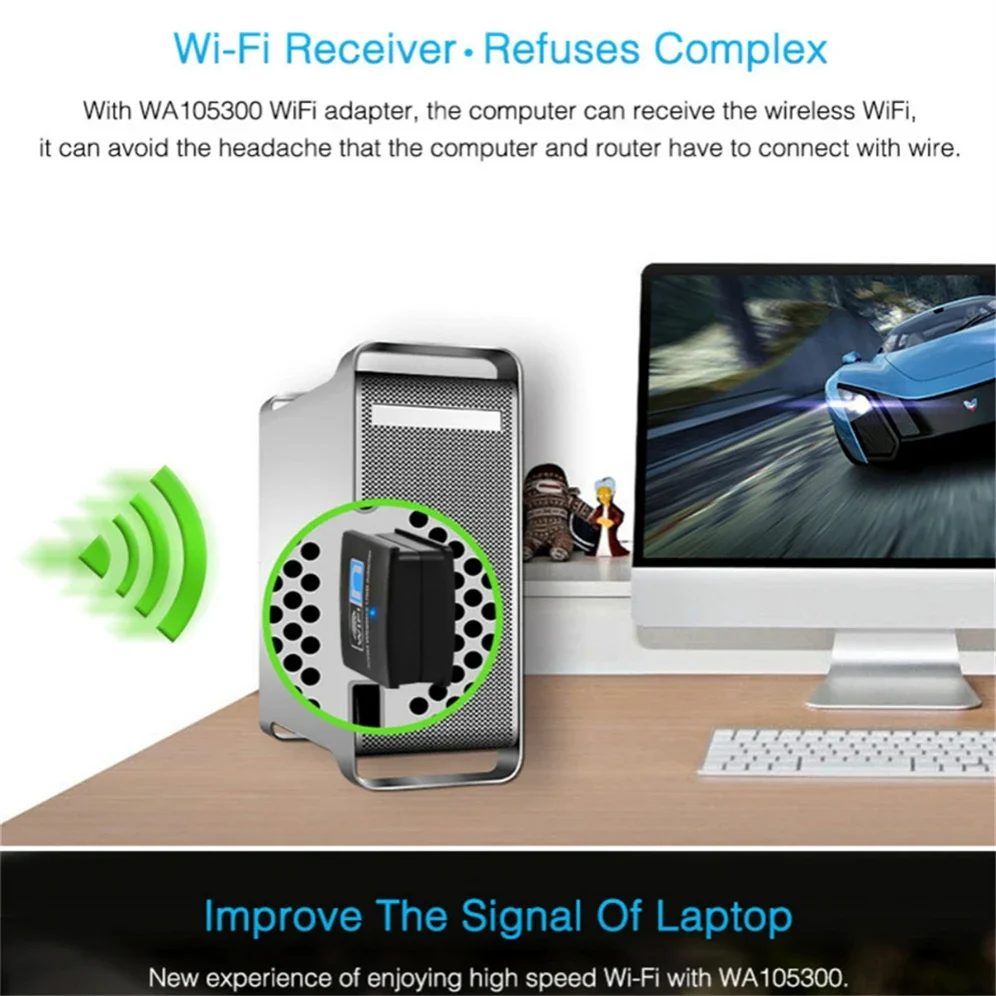 300 Mbps, reduciendo la congelación y el retraso del rendimiento durante la transmisión y los juegos. 802.11n/G/B tiene una velocidad de adaptador inalámbrico súper rápida.