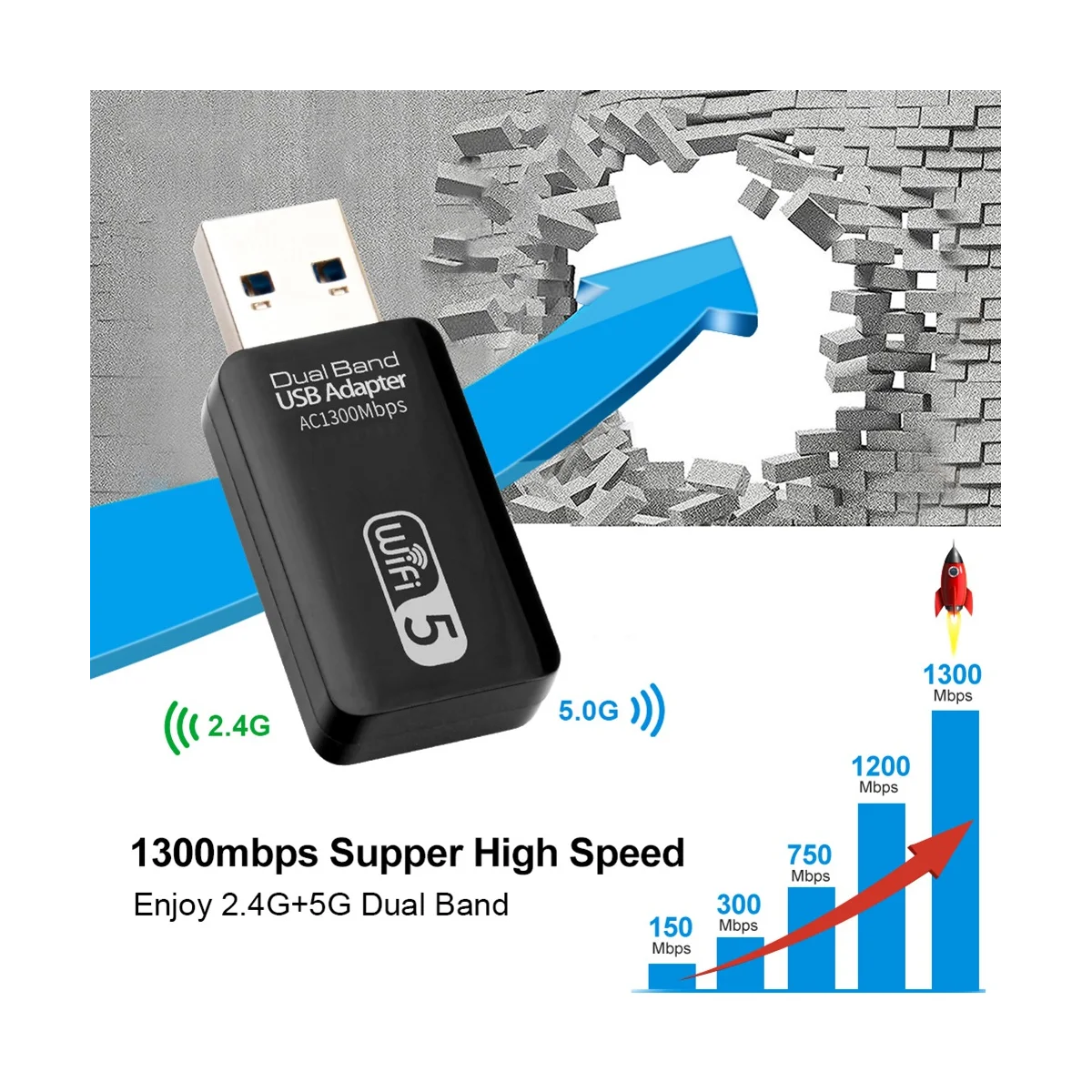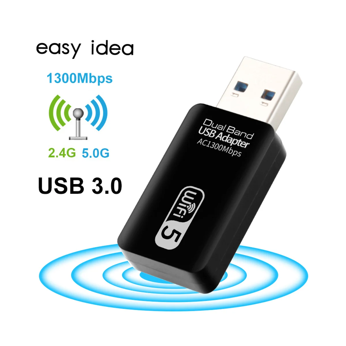 Comprar Adaptador Wifi USB de 5Ghz, dispositivo de doble banda, Ethernet 3,0, 2,4G, 5G, antena Wifi, AC1300Mbps