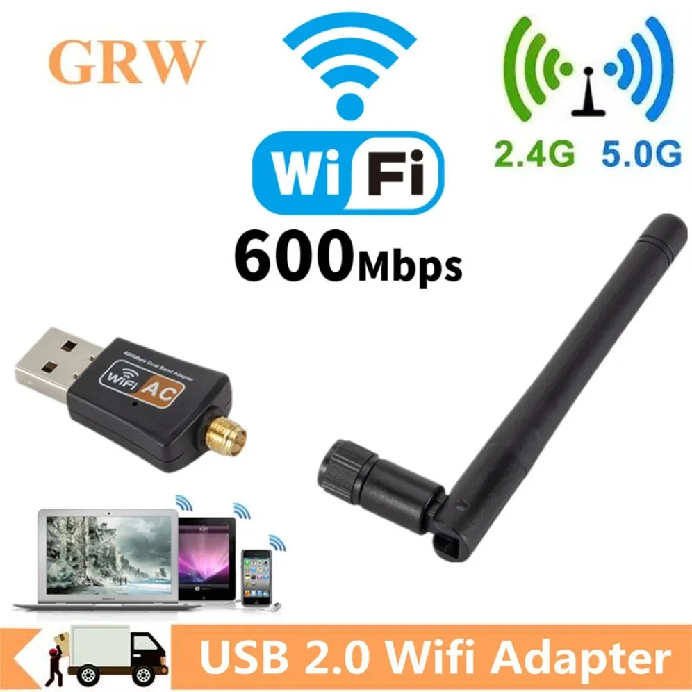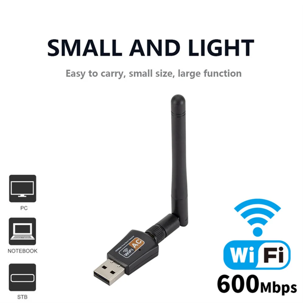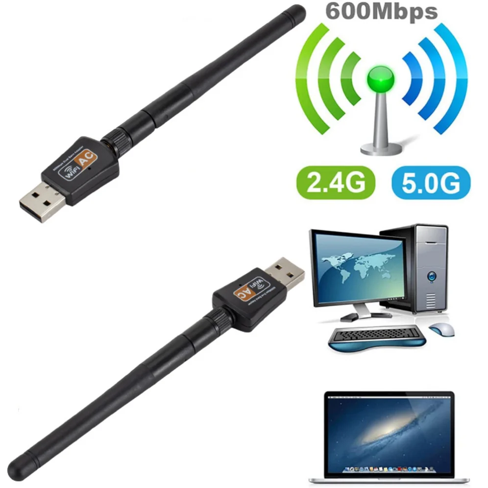Comprar Adaptador Wifi USB de 600Mbps, 2,4 GHz + 5GHz, adaptador Wifi USB de doble banda, tarjeta de red inalámbrica, adaptador WiFi USB inalámbrico Dongle para PC