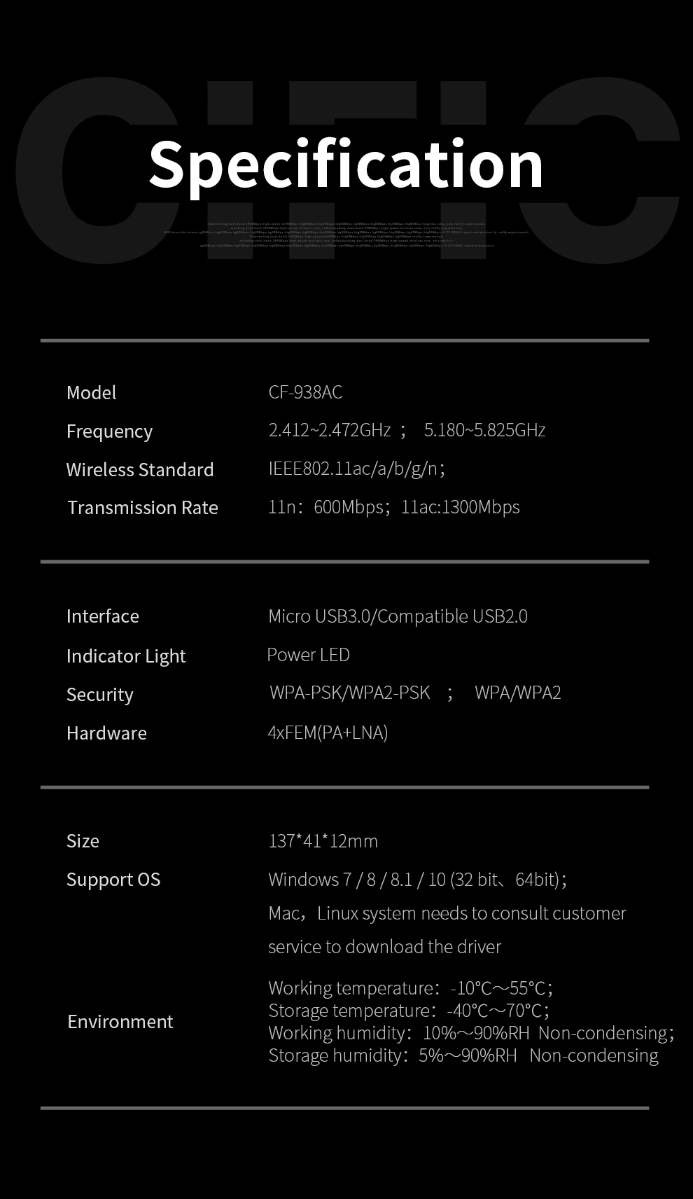 CF-WU783AC Adaptador WiFi USB para juegos inalámbrico de doble banda de alta velocidad de 1900 Mbps