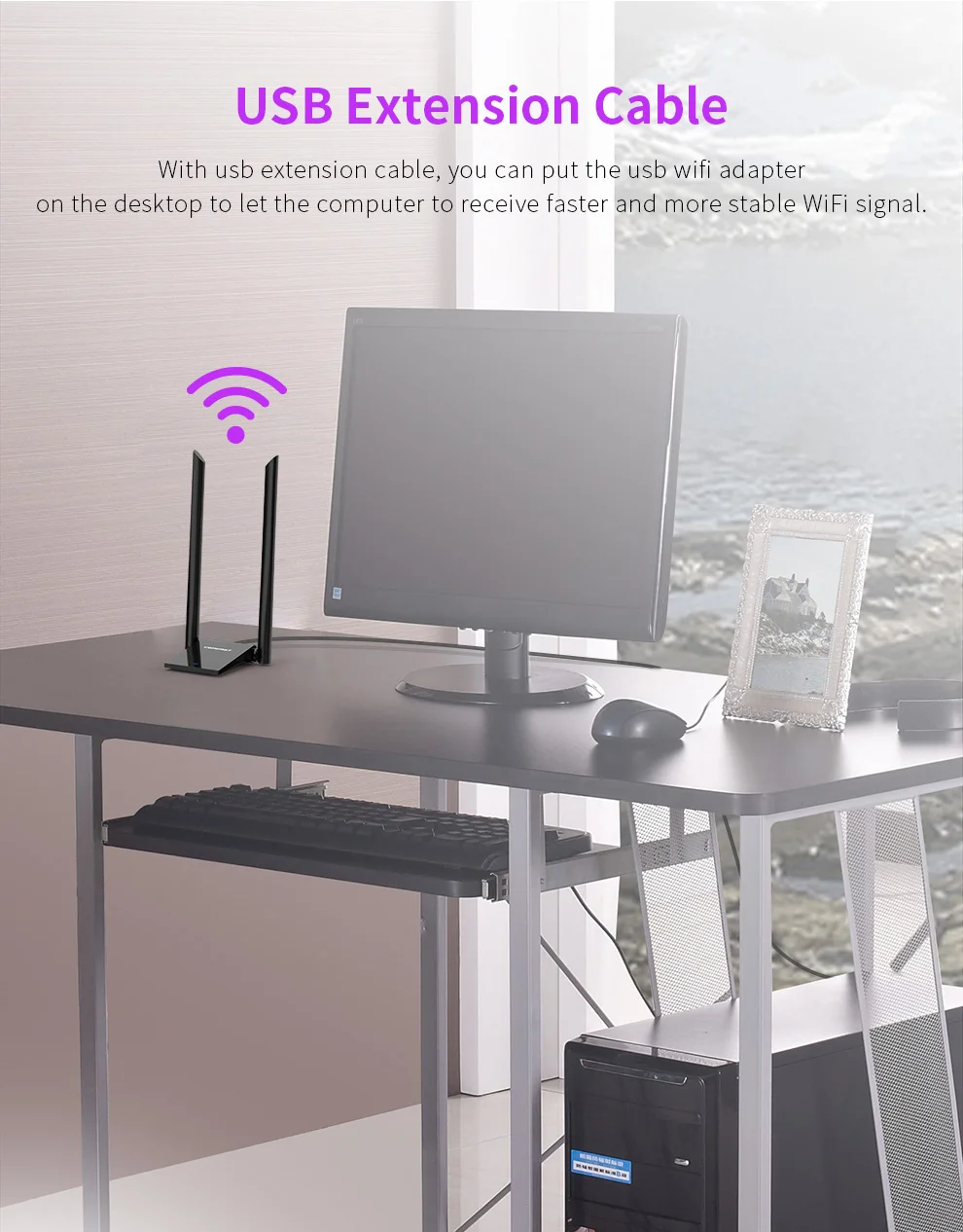 Comprar Adaptador WiFi USB Comfast, antenas de largo alcance de 1900Mbps, 2 antenas de 6dBi para tarjeta de red USB de 2,4G/5GHz, receptor inalámbrico para ordenador portátil de escritorio