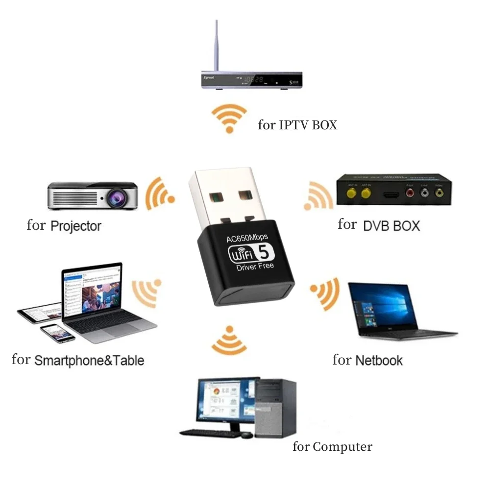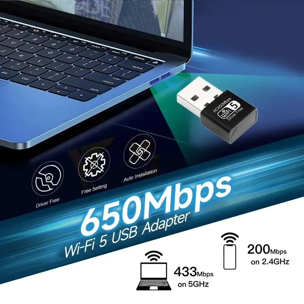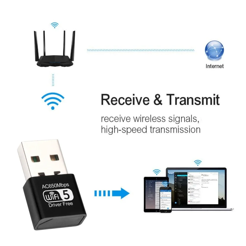 • Compatibilidad con WiFi de doble frecuencia: la unidad adaptadora USB Wi-Fi de 650 M admite frecuencia dual de 2,4G y 5G, lo que garantiza una conexión inalámbrica estable y confiable para su PC.