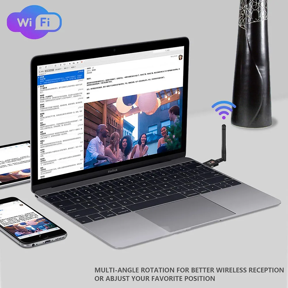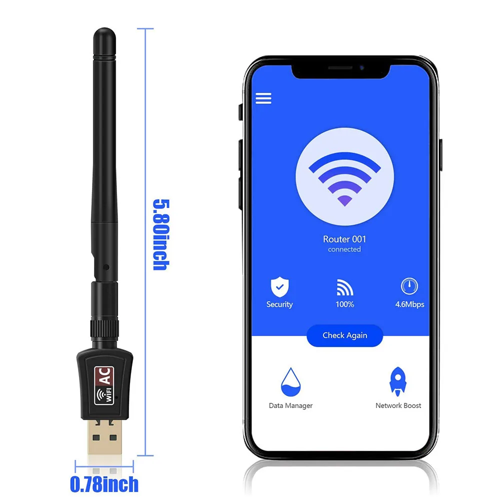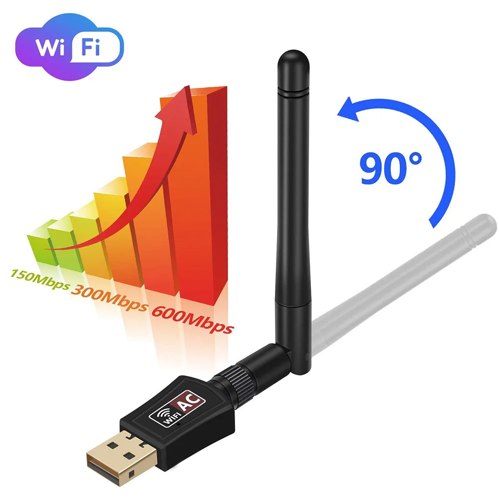 Comprar Adaptador WIFI USB inalámbrico de doble banda, adaptador de red de antena Dongle para tableta, portátil y PC, AC 600M, más rápido