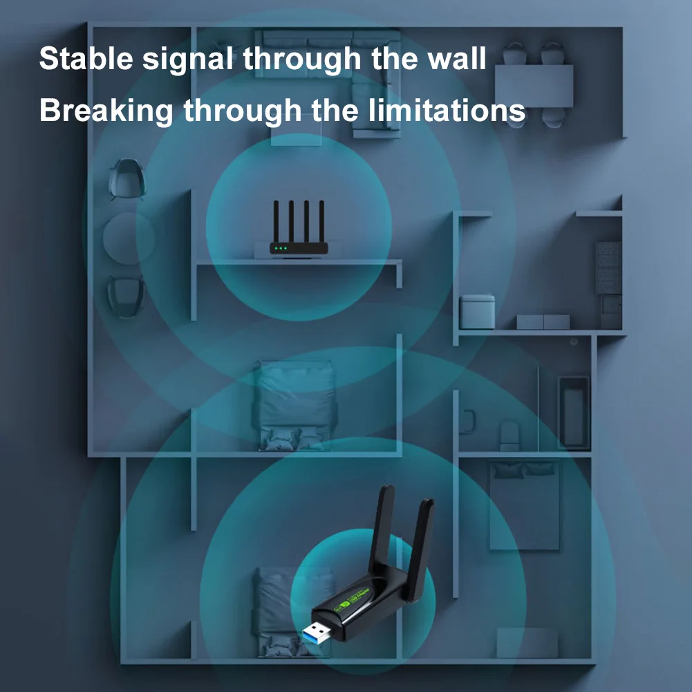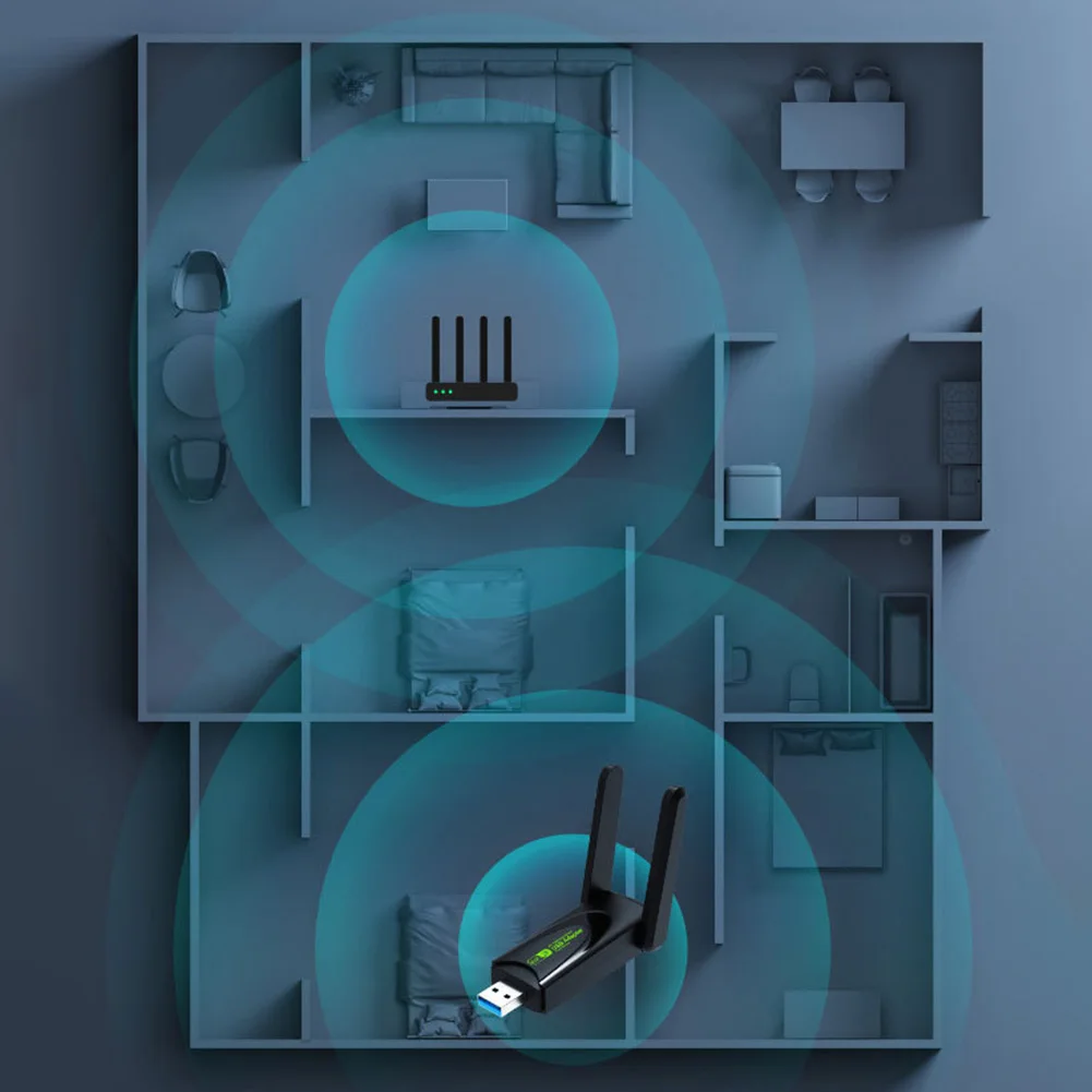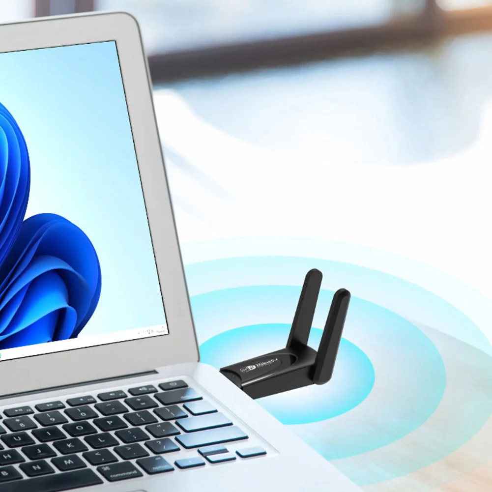 4.Diseño de antena dual externa para señal fuerte:Equipado con antenas externas duales, el Dongle USB mejora significativamente la intensidad y la cobertura de la señal, asegurando conexiones a Internet estables en diversos entornos para descargas fluidas, video HD y juegos en línea.