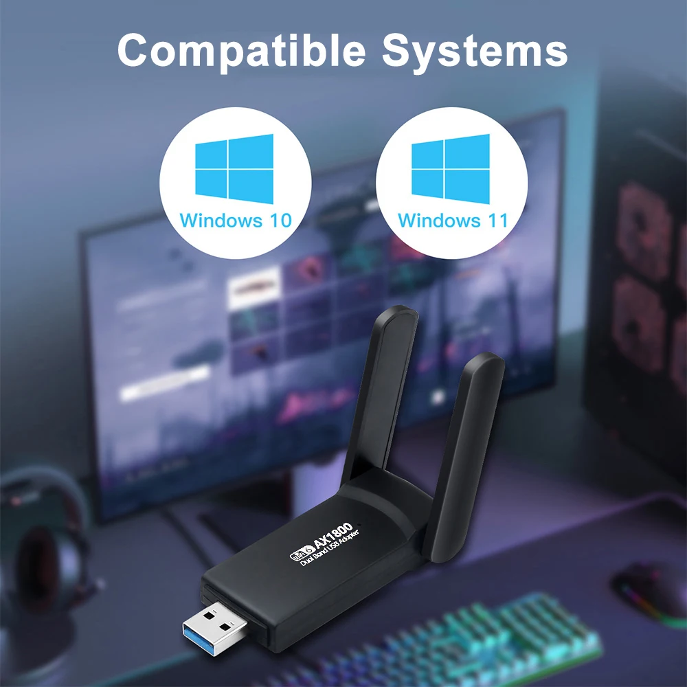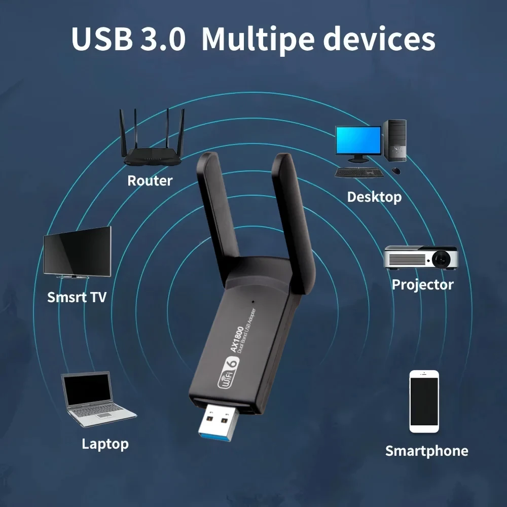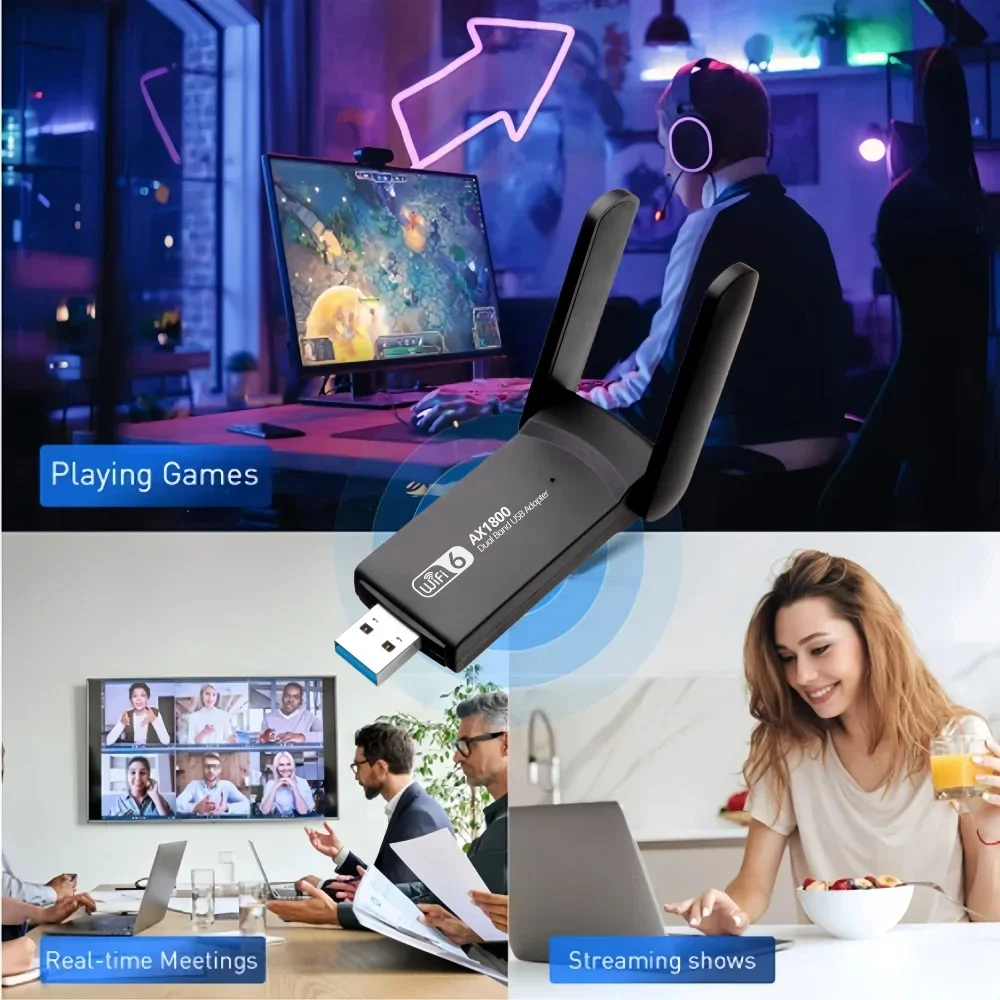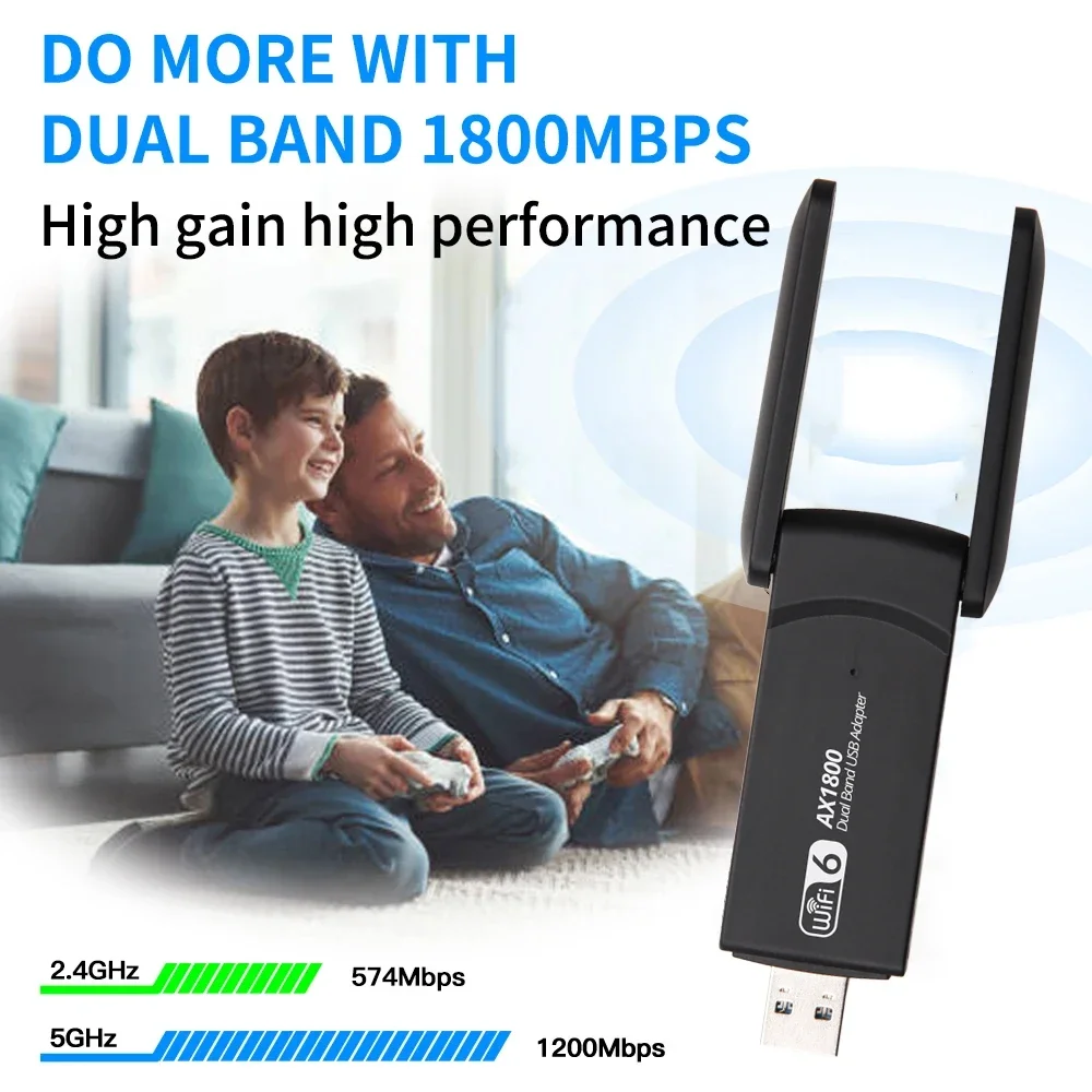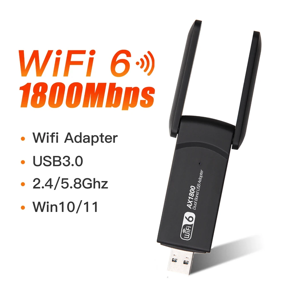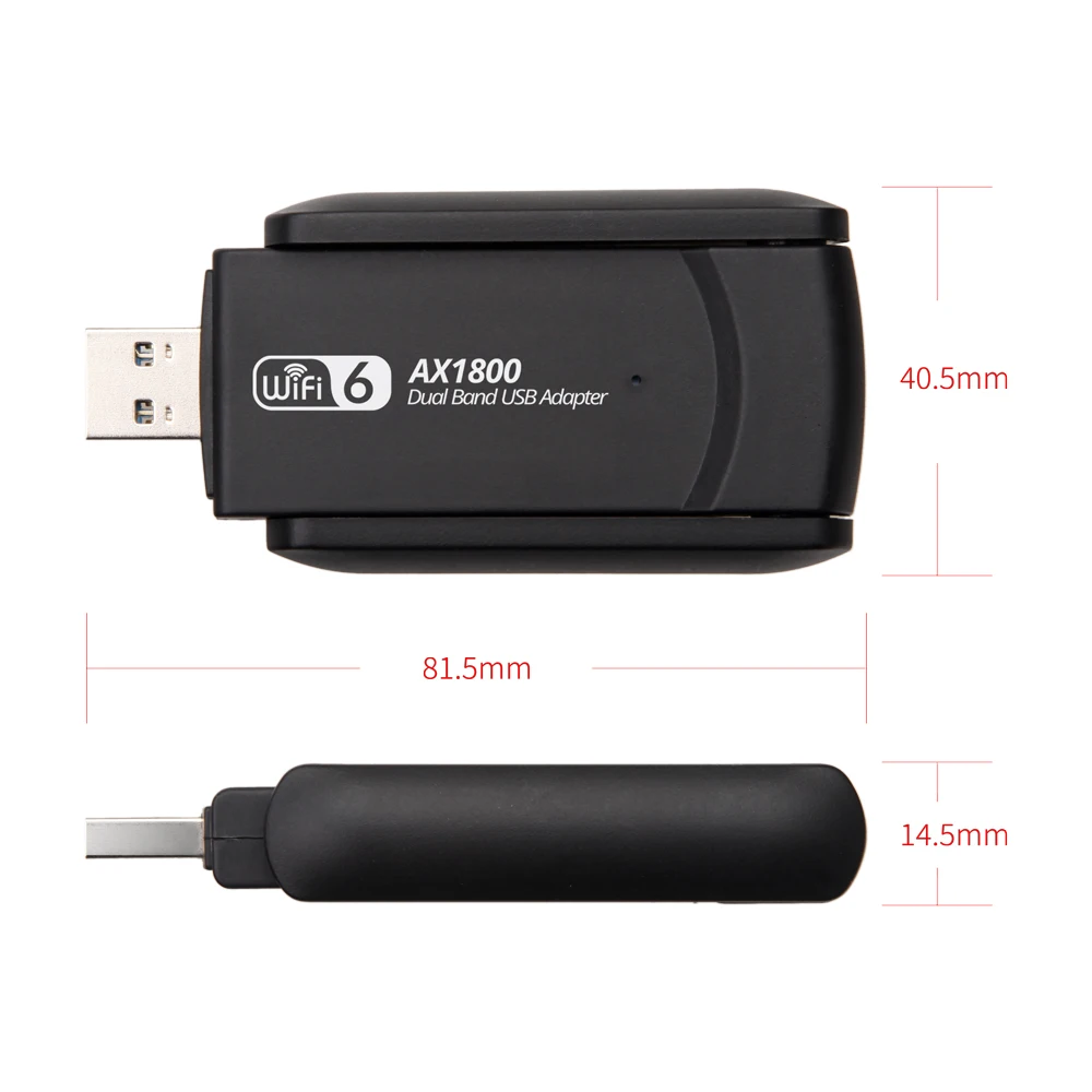 Comprar Adaptador WiFi USB WiFi6 1800Mbps de doble banda AX1800 2,4G/5GHz tarjeta de red USB3.0 Wifi Dongle receptor MU-MIMO para PC portátil ventana