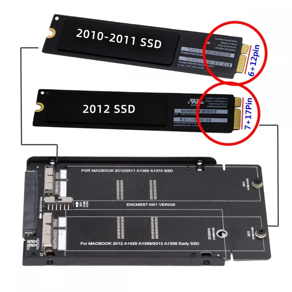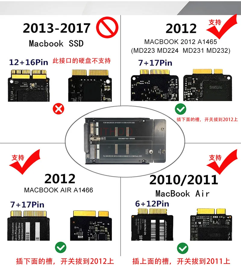 4.)Puede funcionar con todos los SSD de 12+6 pines y 17+7 pines.(de 2011 a 2013 de principios de SSD MAC)