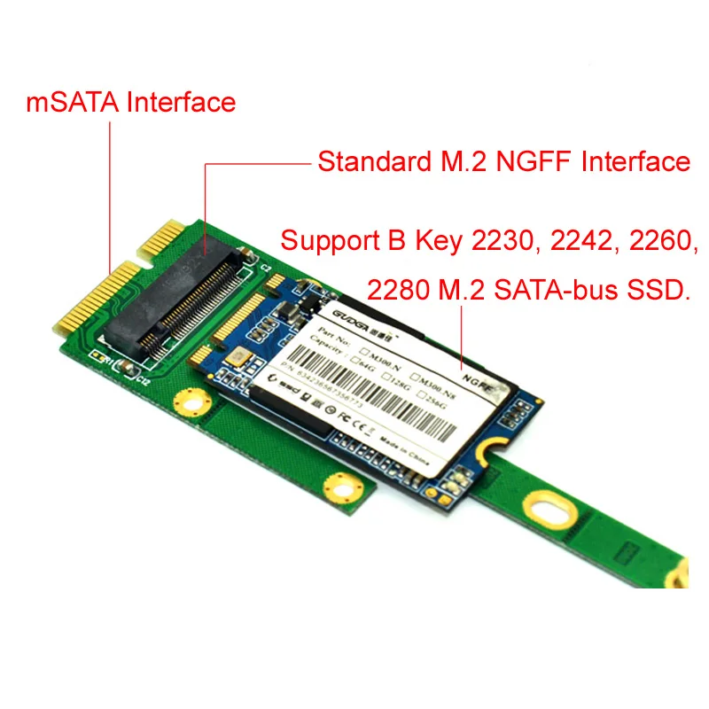 Comprar Adaptadores mSATA a M.2 NGFF, tarjeta de conversión de 6,0 Gb/s, NGFF M.2, SATA-Bus, SSD B Key a mSATA macho, adaptador elevador M.2 para 2230-2280 M2 SSD
