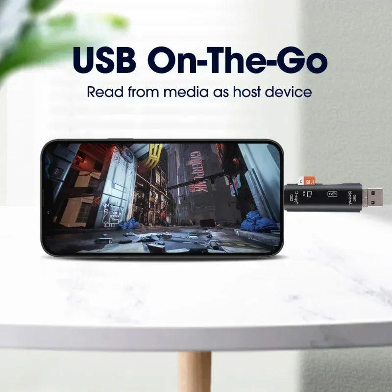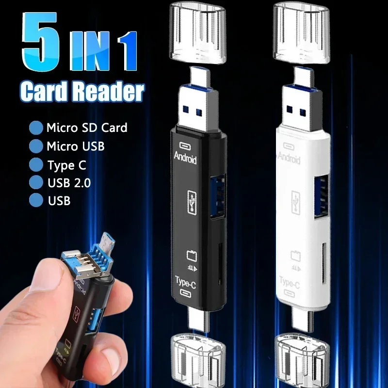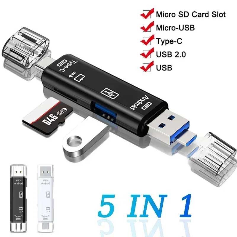 Comprar Adaptadores multifunción 5 en 1 para teléfono móvil, alta velocidad, OTG tipo C/USB 2,0/Micro USB/TF/SD, convertidores de lector de tarjetas de memoria