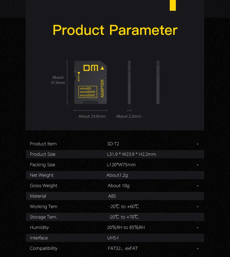 Comprar Adaptadores de tarjeta de memoria DM SD-T2 SD2.0 compatibles con microSD microSDHC microSDXC admite capacidad máxima a 2TB