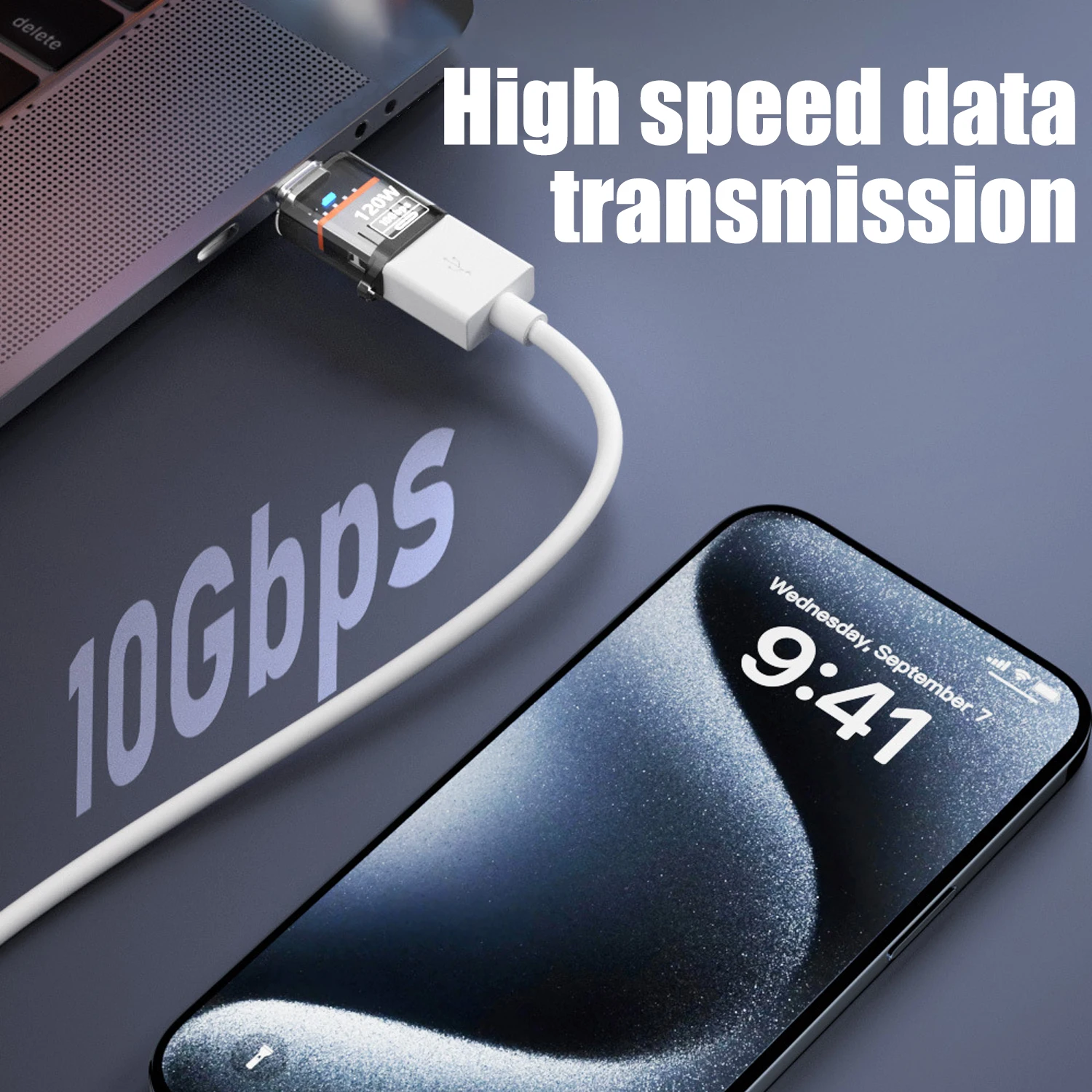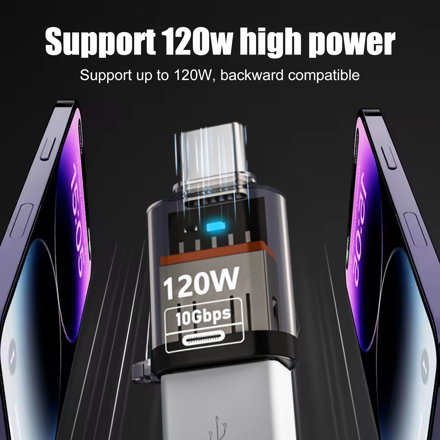 [Carga súper rápida de 120 W]: este adaptador USB 3.2 admite carga de alta velocidad de hasta 120 W, proporcionando energía rápida a dispositivos compatibles como teléfonos inteligentes, tabletas y computadoras portátiles.Perfecto para recargas rápidas sin comprometer la eficiencia, incluso con un uso intensivo.