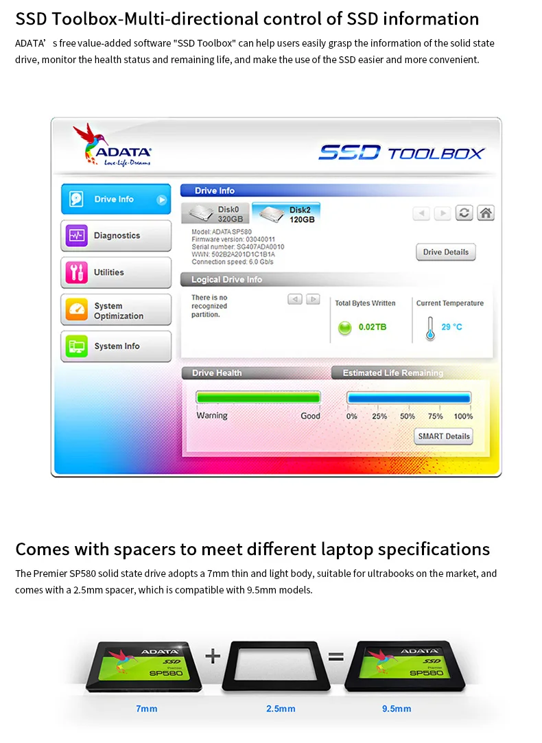 Comprar ADATA-disco duro de estado sólido SP580 SSD, 100% GB, 120GB, 240GB, 960 pulgadas, SATA III, memoria interna para ordenador de escritorio y portátil, 2,5 gb