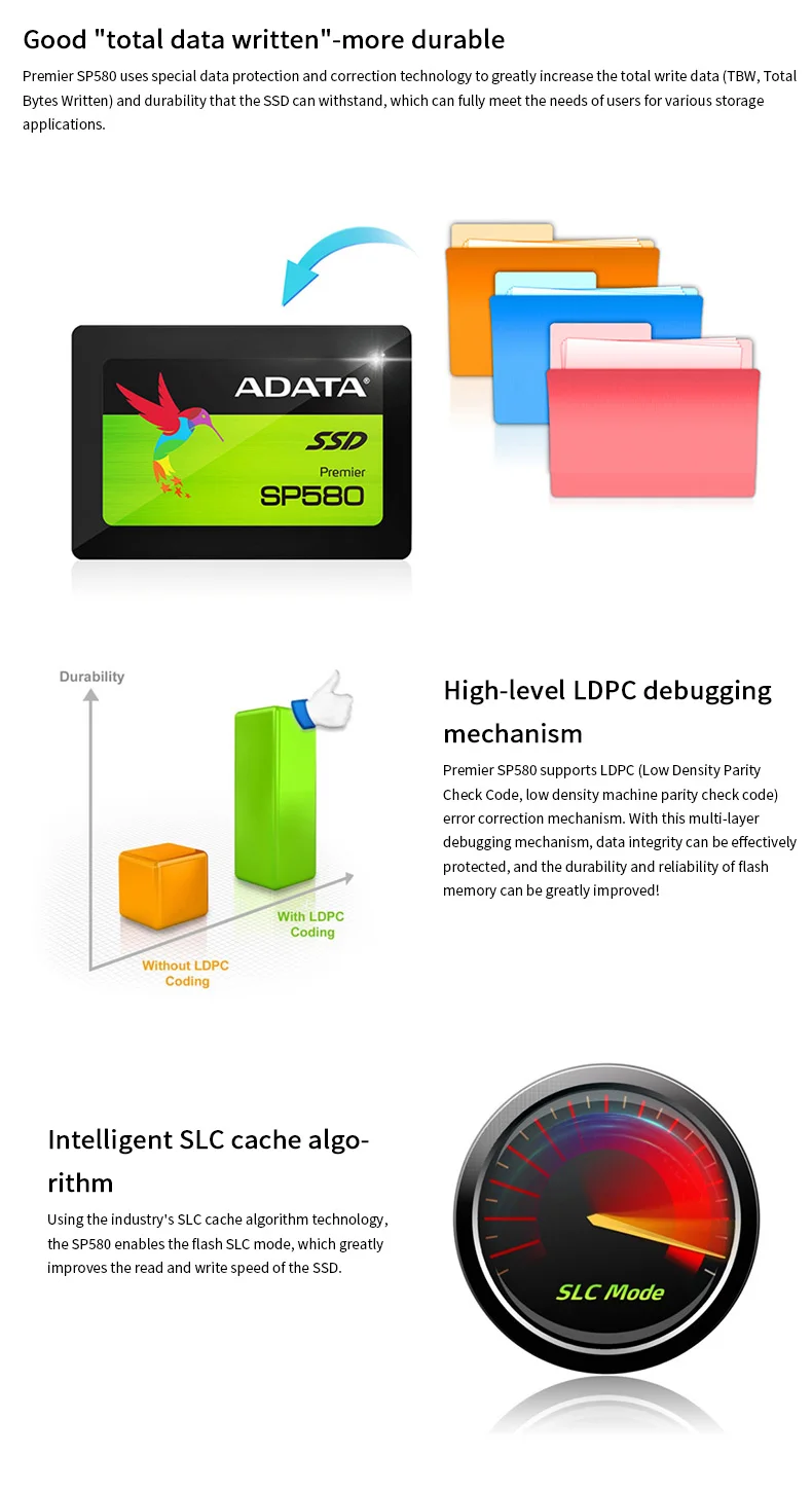 ADATA-disco duro de estado sólido SP580 SSD, 100% GB, 120GB, 240GB, 960 pulgadas, SATA III, memoria interna para ordenador de escritorio y portátil, 2,5 gb