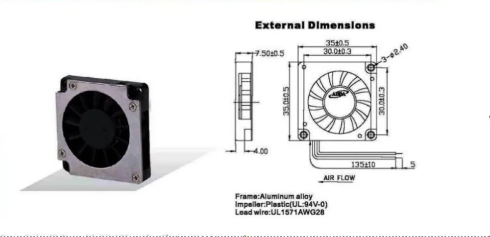 Comprar ADDA AB3505MX-QB0 3507 35MM ventilador para cuaderno de notas ventilador para portátil 35x35x7MM 3,5 cm ventilador de refrigeración DC 5V con carcasa de aluminio