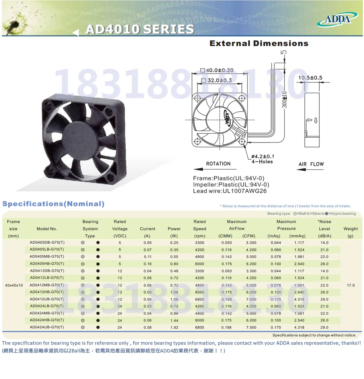 Comprar ADDA-ventilador de refrigeración para impresora 3D, ventilador de dos rodamientos de bolas de 40MM, 4CM, 40x40x10mm, 2 pines, DC12V 4010