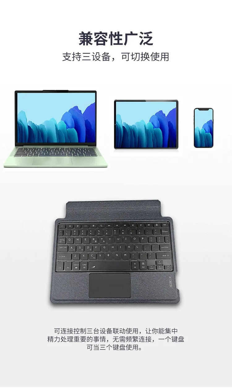 2.El modo de teclado único es un teclado desmontable que puede conectar hasta tres dispositivos simultáneamente y se puede cambiar para su uso. Puede conectar y controlar tres dispositivos para que funcionen juntos, lo que le permite concentrarse en tareas importantes sin conexiones frecuentes.Un teclado se puede utilizar como tres teclados. Puede conectar y controlar tres dispositivos para que funcionen juntos, lo que le permite concentrarse en tareas importantes sin conexiones frecuentes.Un teclado se puede utilizar como tres teclados.