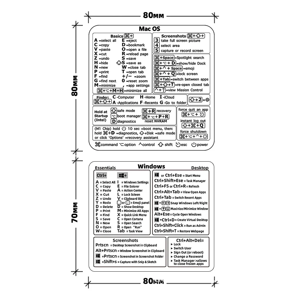 With the Windows Reference Keyboard Shortcut Sticker, you have the most important shortcuts conveniently placed right in front of you. Easily learn new shortcuts and always be able to quickly lookup commands without the need to “Google” it.