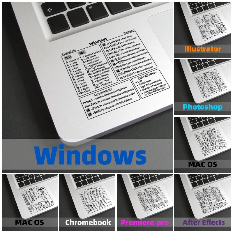 Comprar Adhesivo adhesivo de atajo de teclado de referencia de PC Windows para Macbook atajo PC pegatinas de atajo de teclado de referencia de computadora