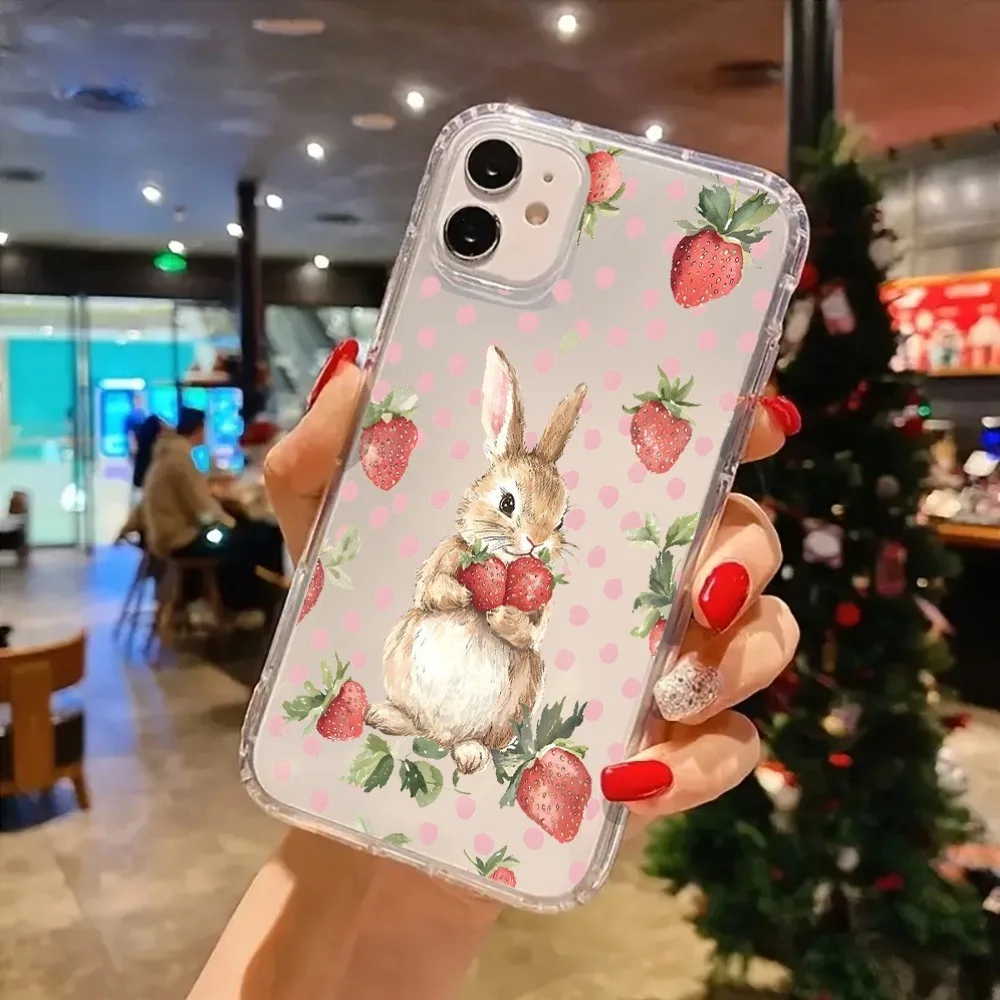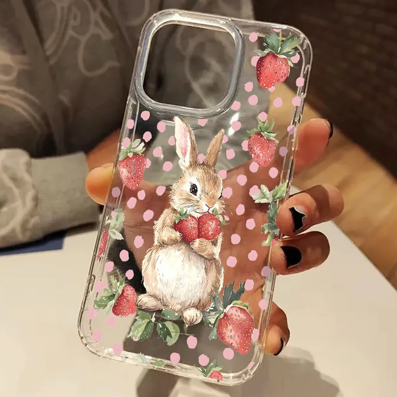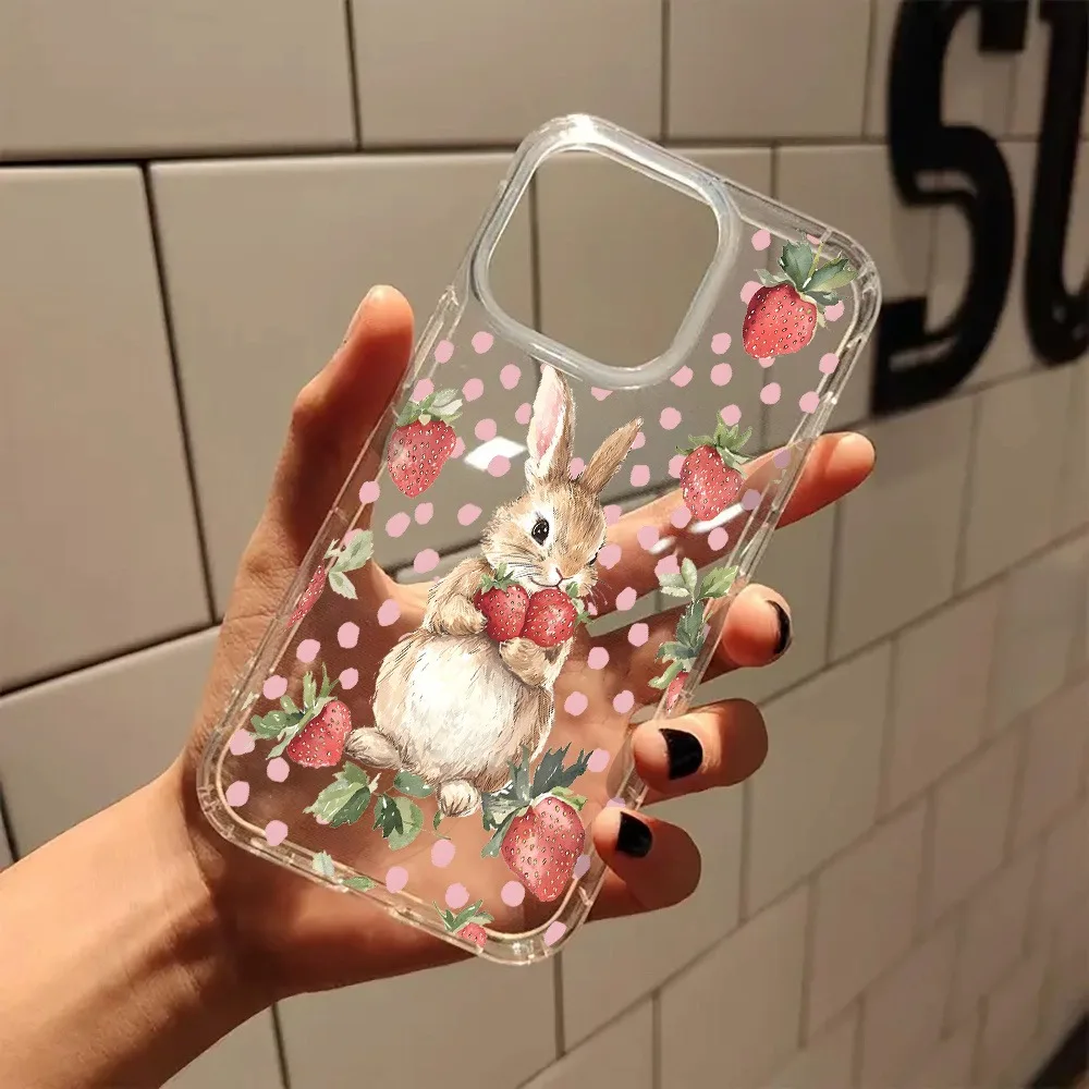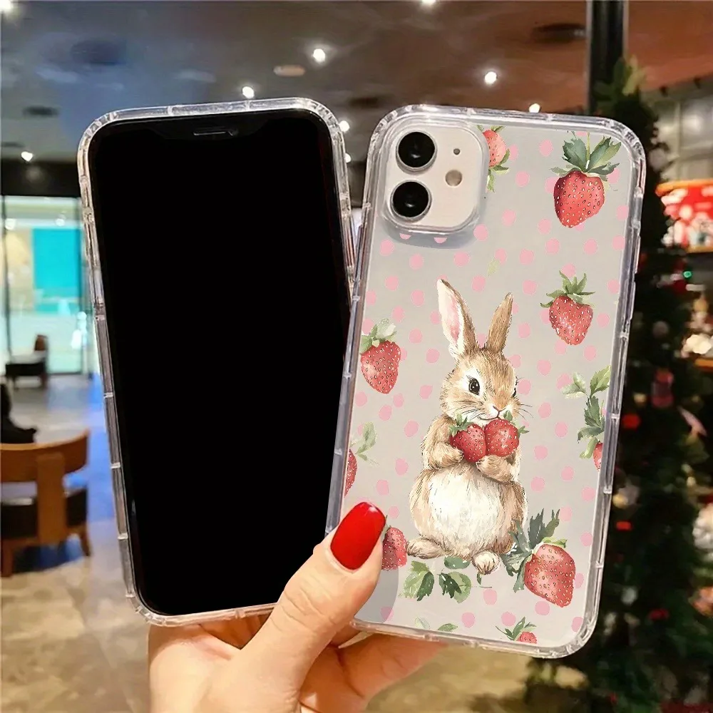 Comprar Adorable conejo cereza transparente funda de teléfono para iPhone 17 16 15 14 Pro Max 13 12 11 XS X XR 7 8 Plus 17Air cubierta acrílica