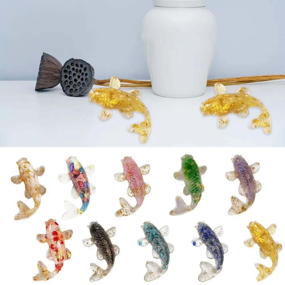 Comprar Adorno de pez Koi de piedra triturada de cristal Natural, 2 piezas, Gel de goteo, adornos de peces pequeños, joyería de escritorio, regalos