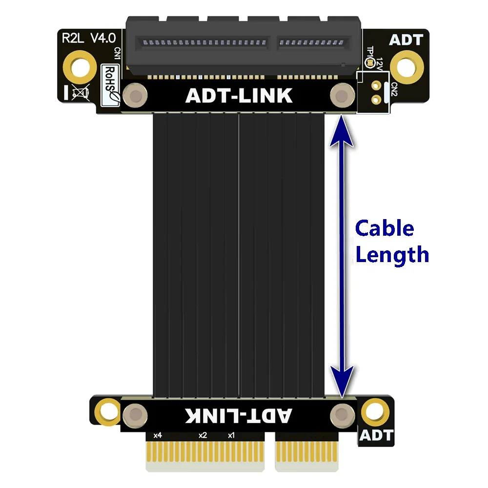 Cable de extensión de doble esquina vertical PCIe x4 a x4 a 90 grados R22SL-TU 4.0 PCIe 4.0 x4