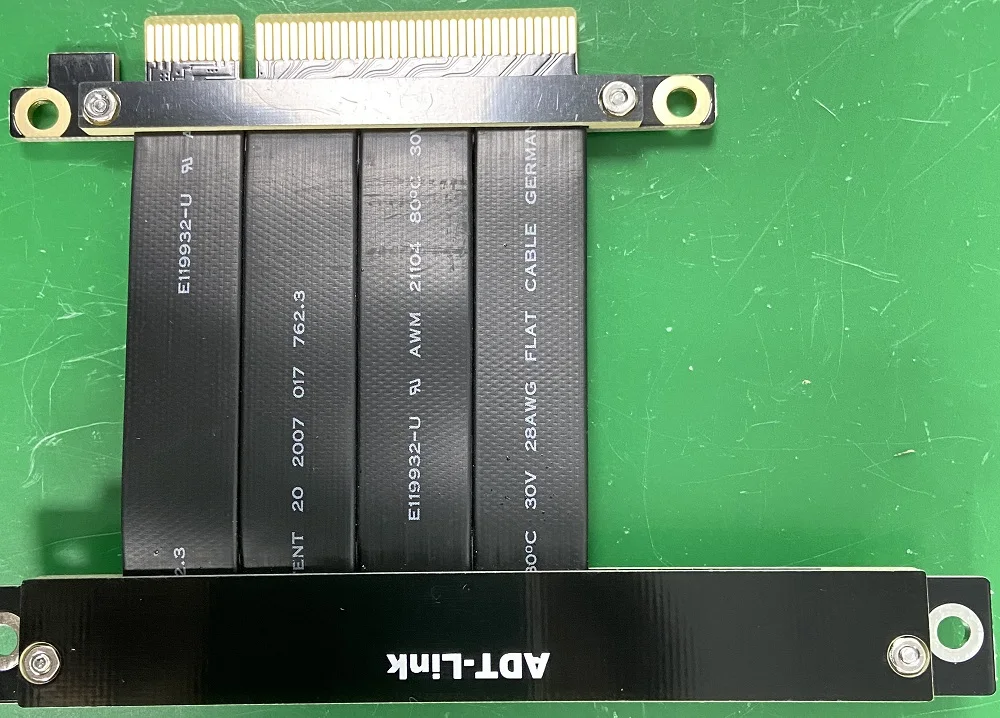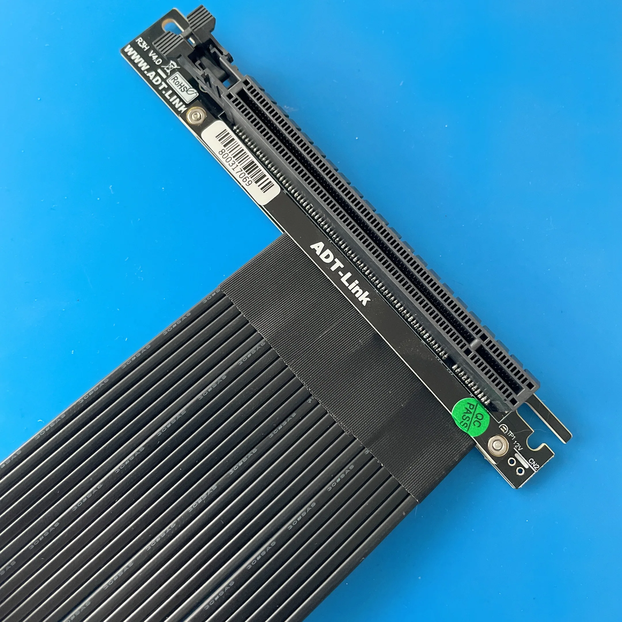 El cable es la cuarta generación de cable PCIe dedicado desarrollado y diseñado por ADT. El grosor del cable negro es de 1,3mm, el cable plateado es de 1,4mm y el cable azul es de 0,85mm. El cable se puede doblar y plegar sin afectar el uso.