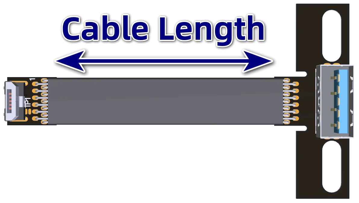 La Longitud del cable se refiere a la parte del cable visible. No incluye el PCB ni el conector. Para la longitud del cable, consulte la flecha azul de 5cm en la siguiente figura.