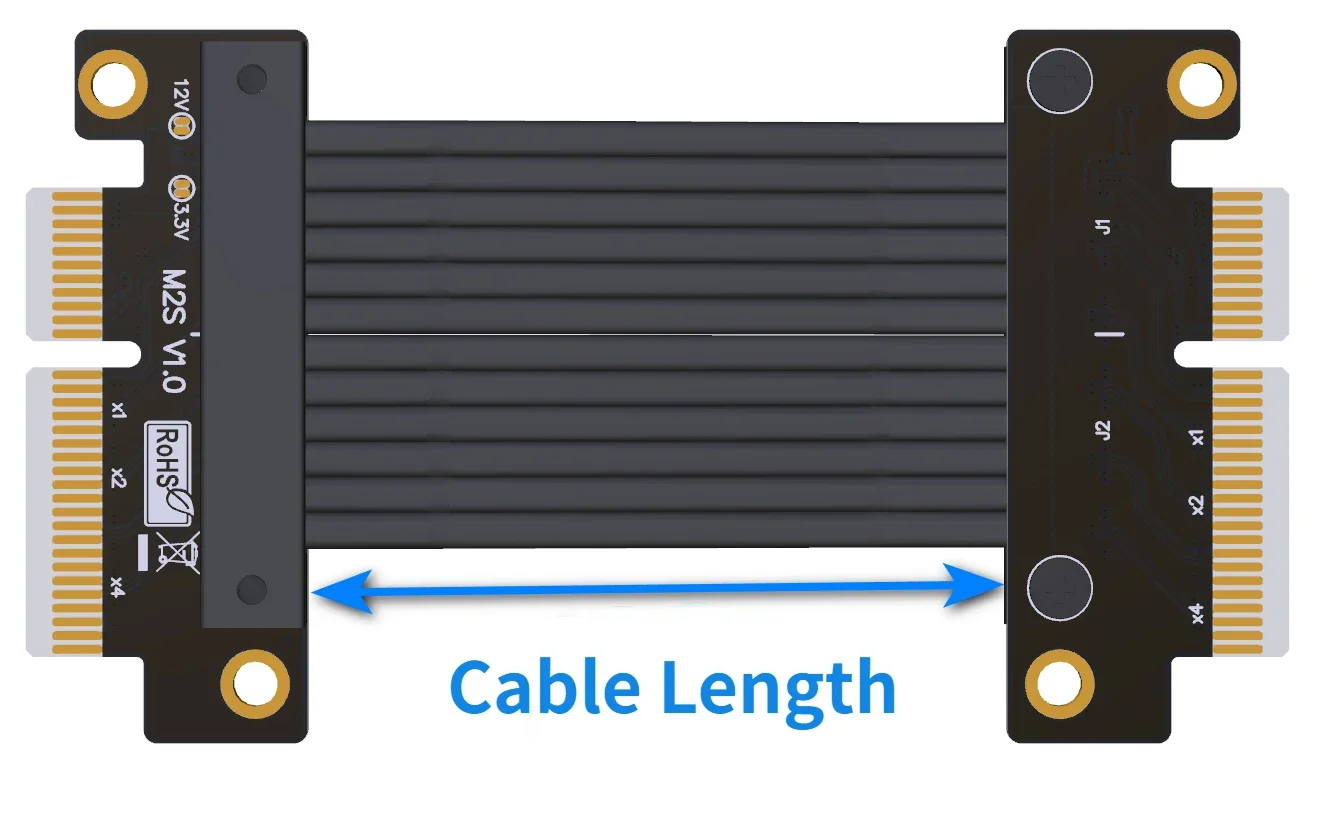2. Ventaja de longitud de línea, de 3 cm a 1 m puede aceptar personalización, nuestra tienda de ventas de cableado de conversión, la impedancia del cable es baja, 60 cm de longitud de línea compatible con PCIe3.0 a velocidad completa.