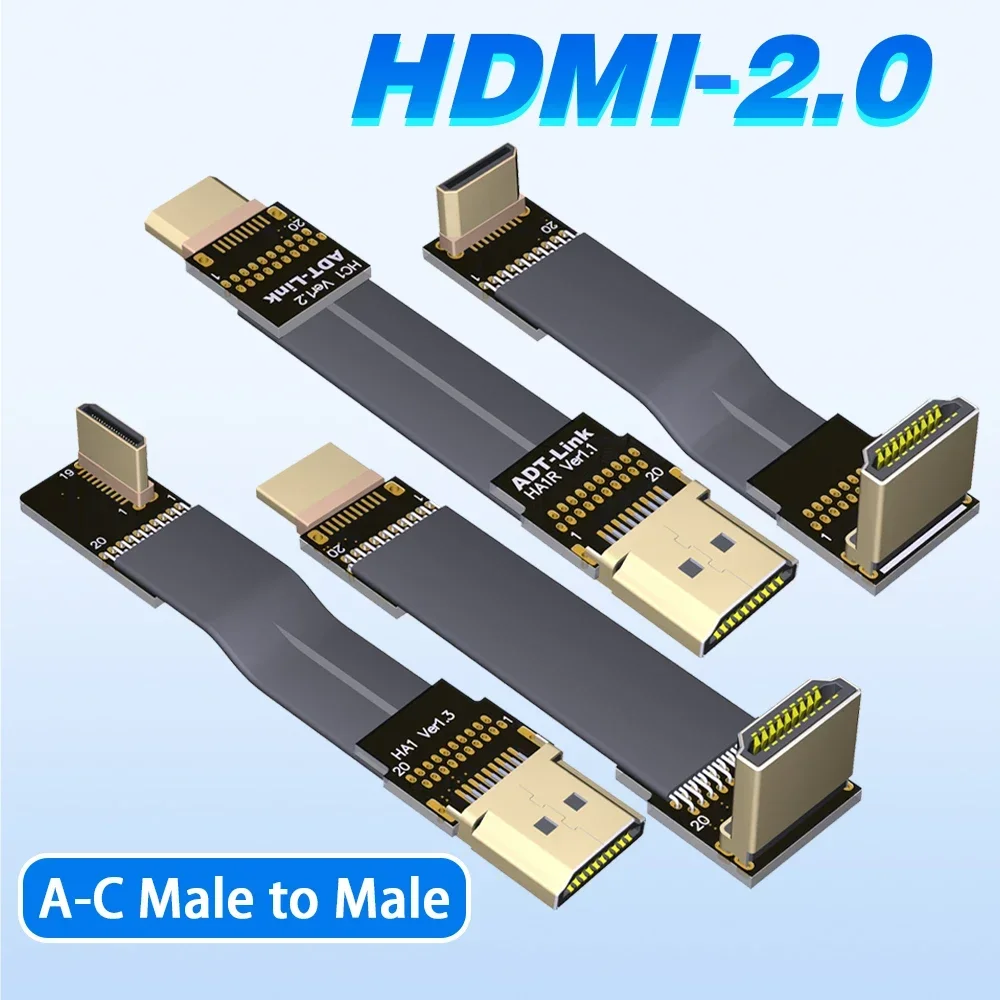 Comprar ADT HDMI2.0 a mini-hdmi arriba abajo Cable de extensión plano de 90 ángulos para fotografía aérea FPV cámara Gopro tipo A a C HDR 4K 18Gbps