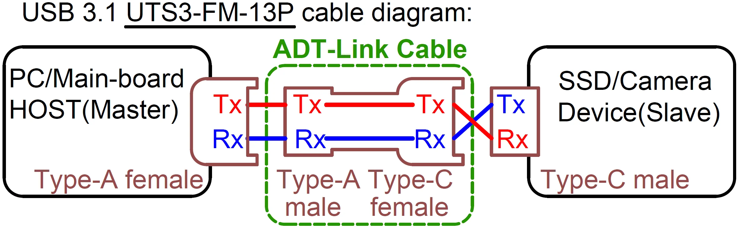 T4B/T5B no tiene chip y también admite inserción positiva y negativa.La inserción positiva puede admitir USB3.1 de alta velocidad, pero la inserción inversa solo admite USB2.0 de baja velocidad