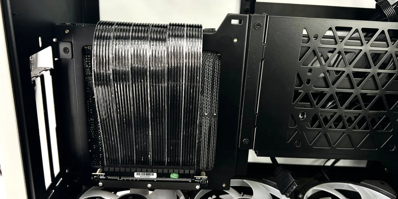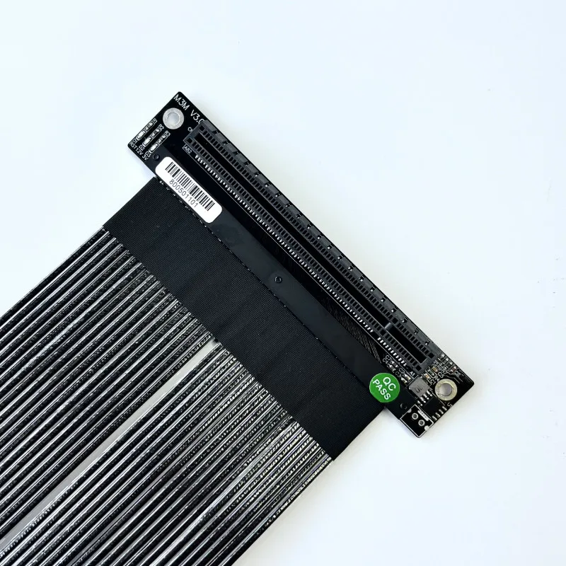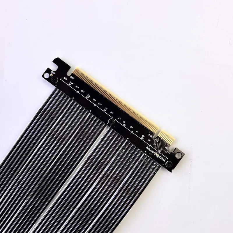 El cable es el cable exclusivo PCIe Gen5 de ADT, el cable plateado Gen4 es de 1,4 mm, mientras que el cable Gen5 es más delgado, solo 0,96 mm, y el cable se puede doblar a voluntad sin afectar el uso.