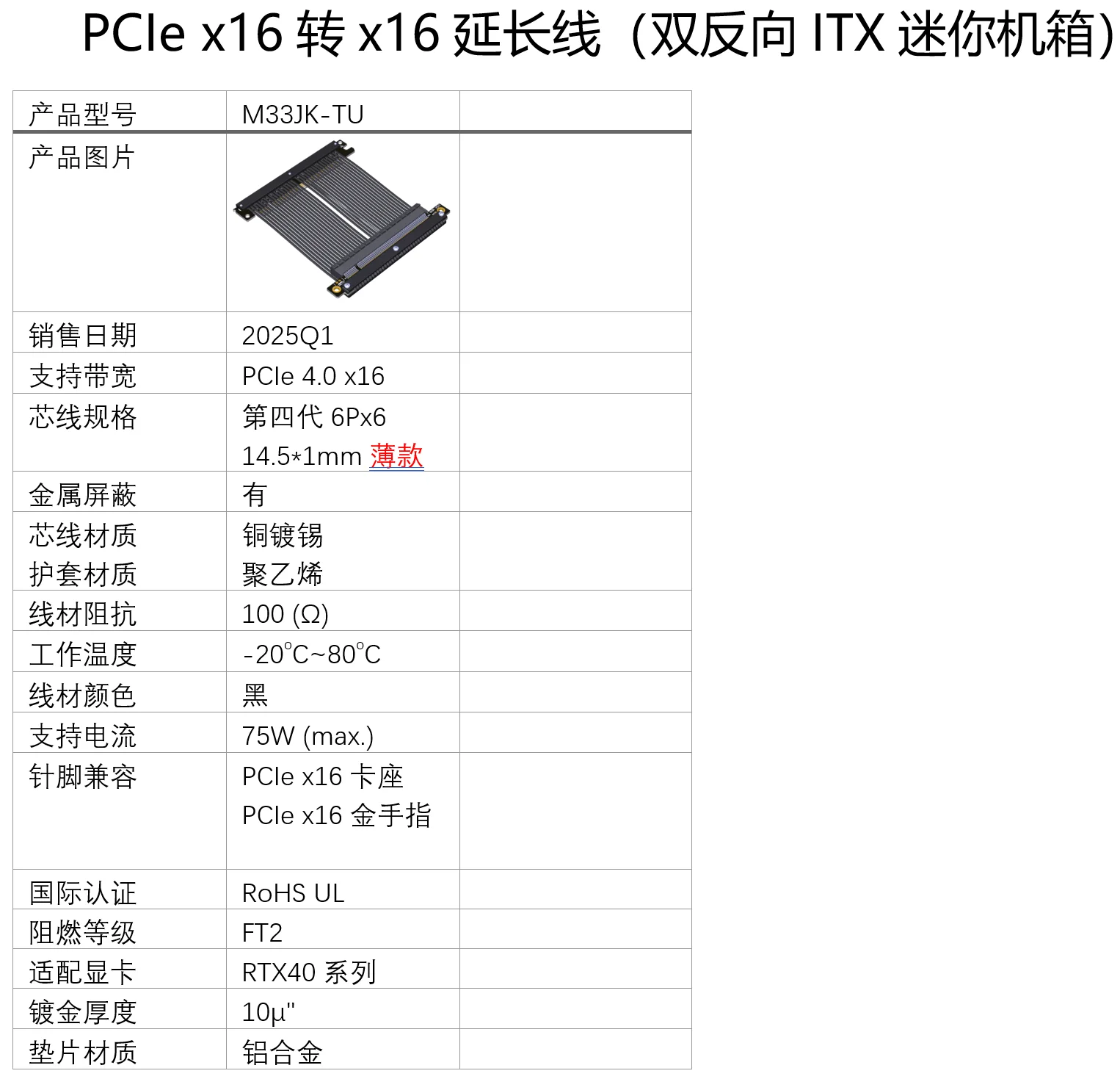 Nombre del producto: cable de extensión PCIe x16 a x16