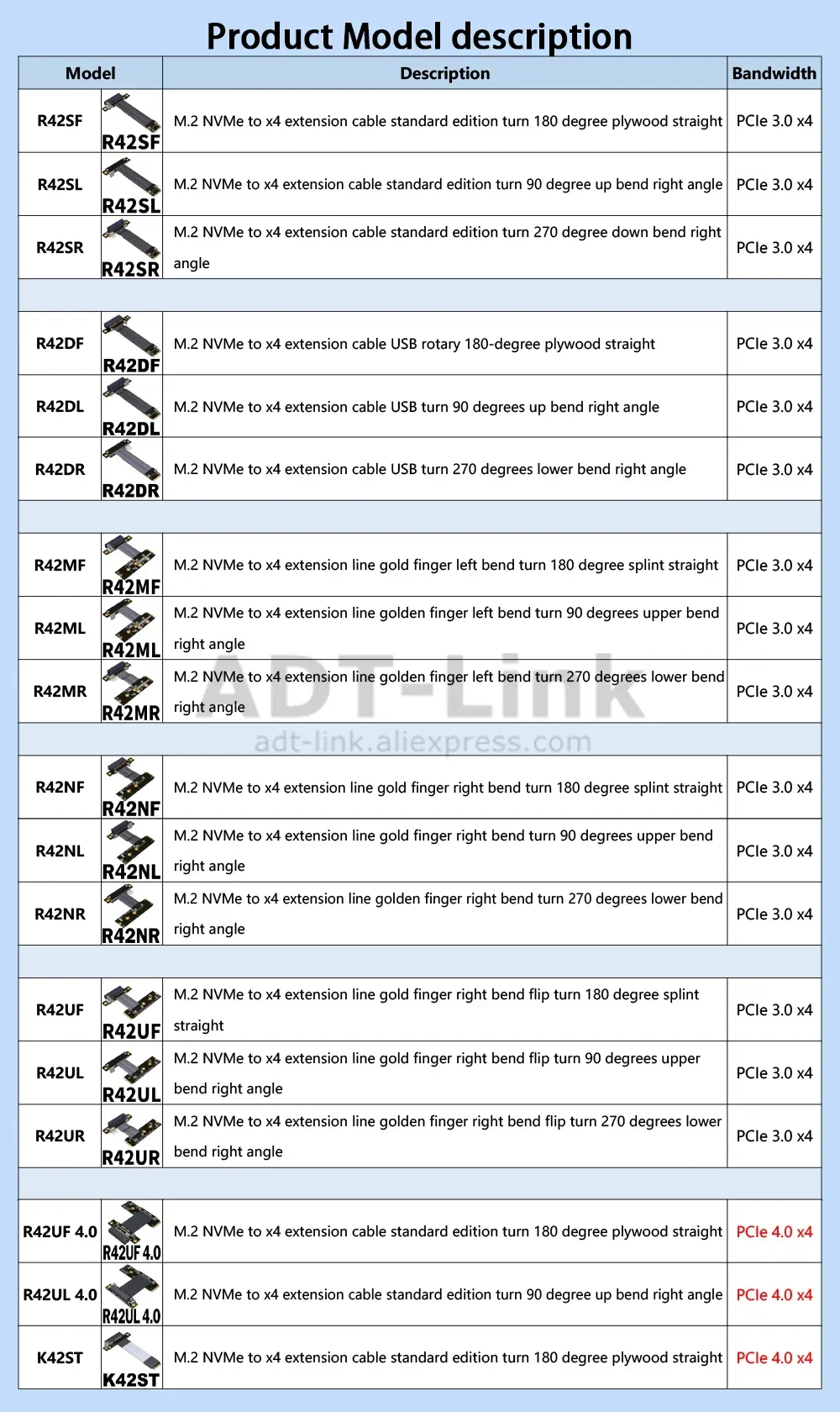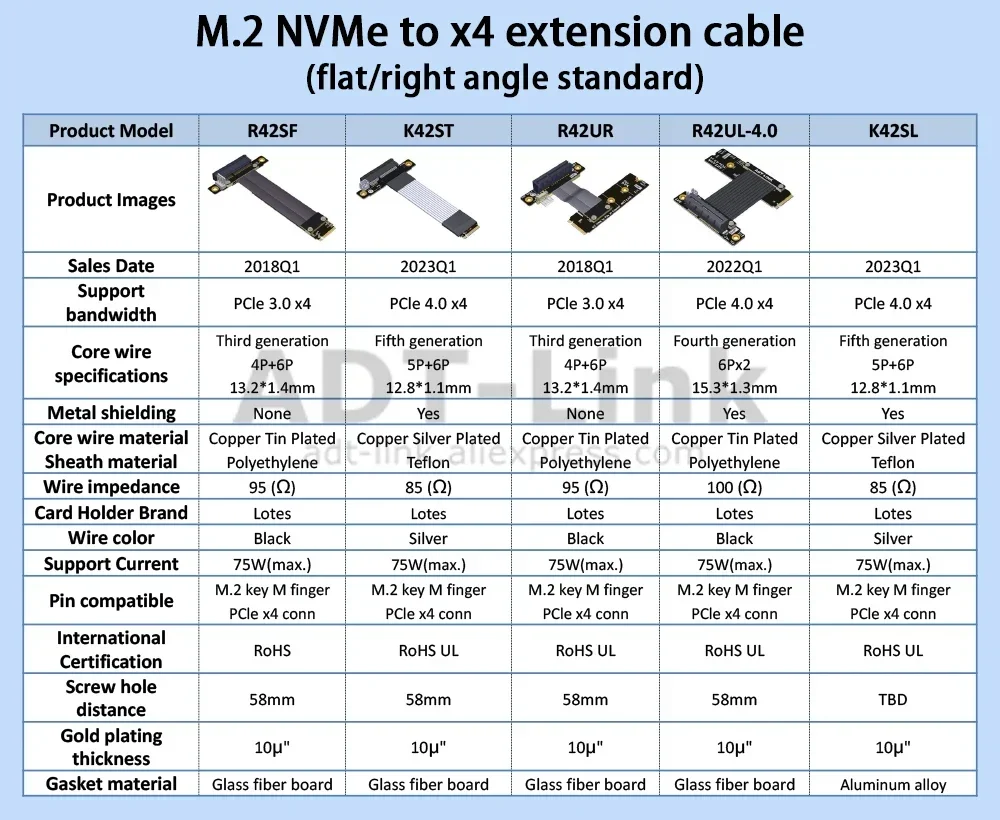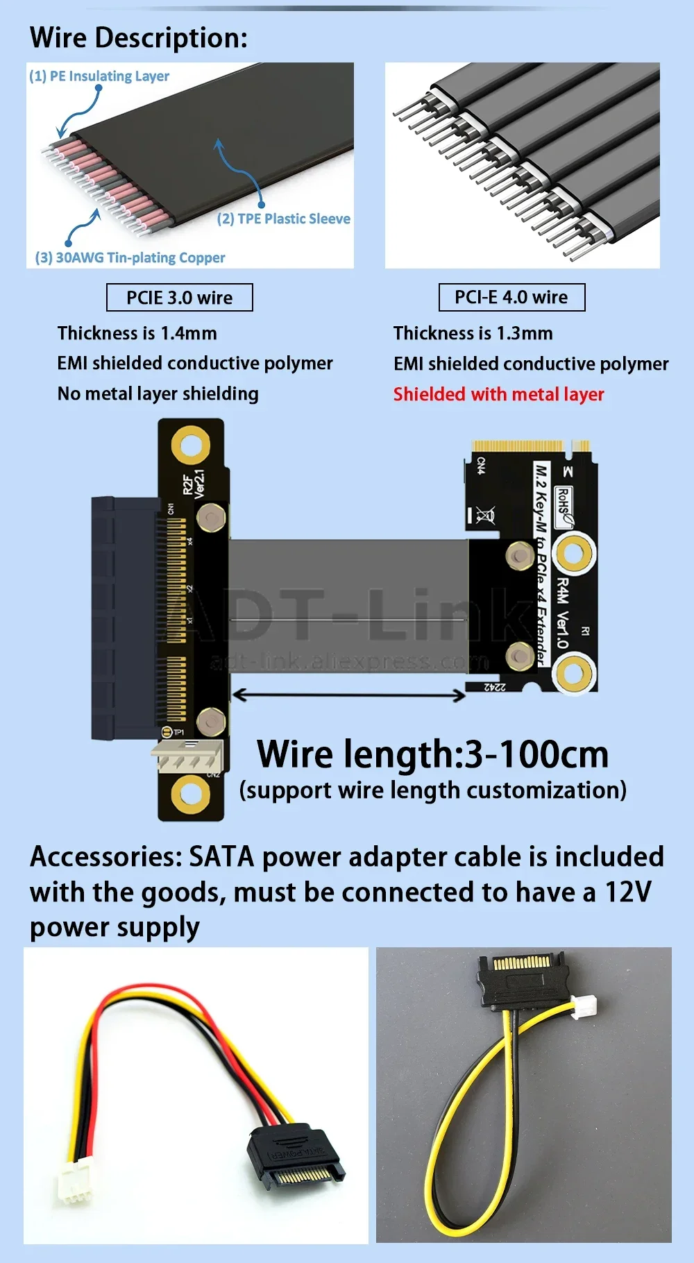 Comprar ADT-Link 32Gbps PCIe 3,0 X4 90 grados PCI-E 4X tarjeta a M2 M.2 para NGFF NVME SSD Cable elevador Gen3.0 GPU placa base extensor plano
