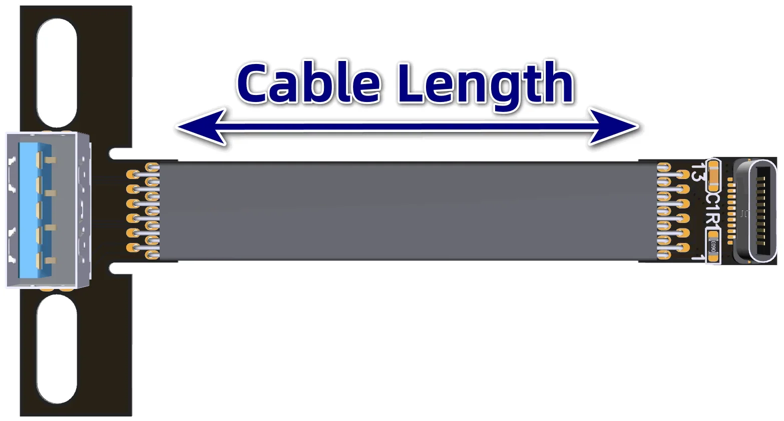 La longitud del cable se refiere a la parte del cable visible.No incluye la PCB ni el conector.Para conocer la longitud del cable, consulte la flecha azul de 5 cm en la siguiente figura.