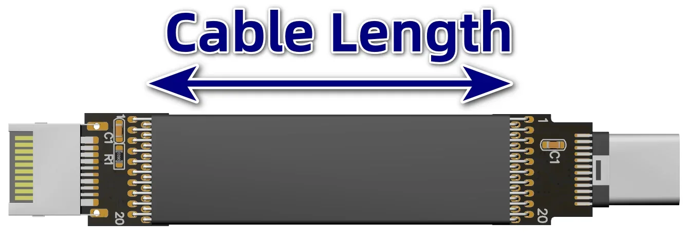 La Longitud del cable se refiere a la parte del cable visible. No incluye el PCB ni el conector. Para la longitud del cable, consulte la flecha azul de 5cm en la siguiente figura.